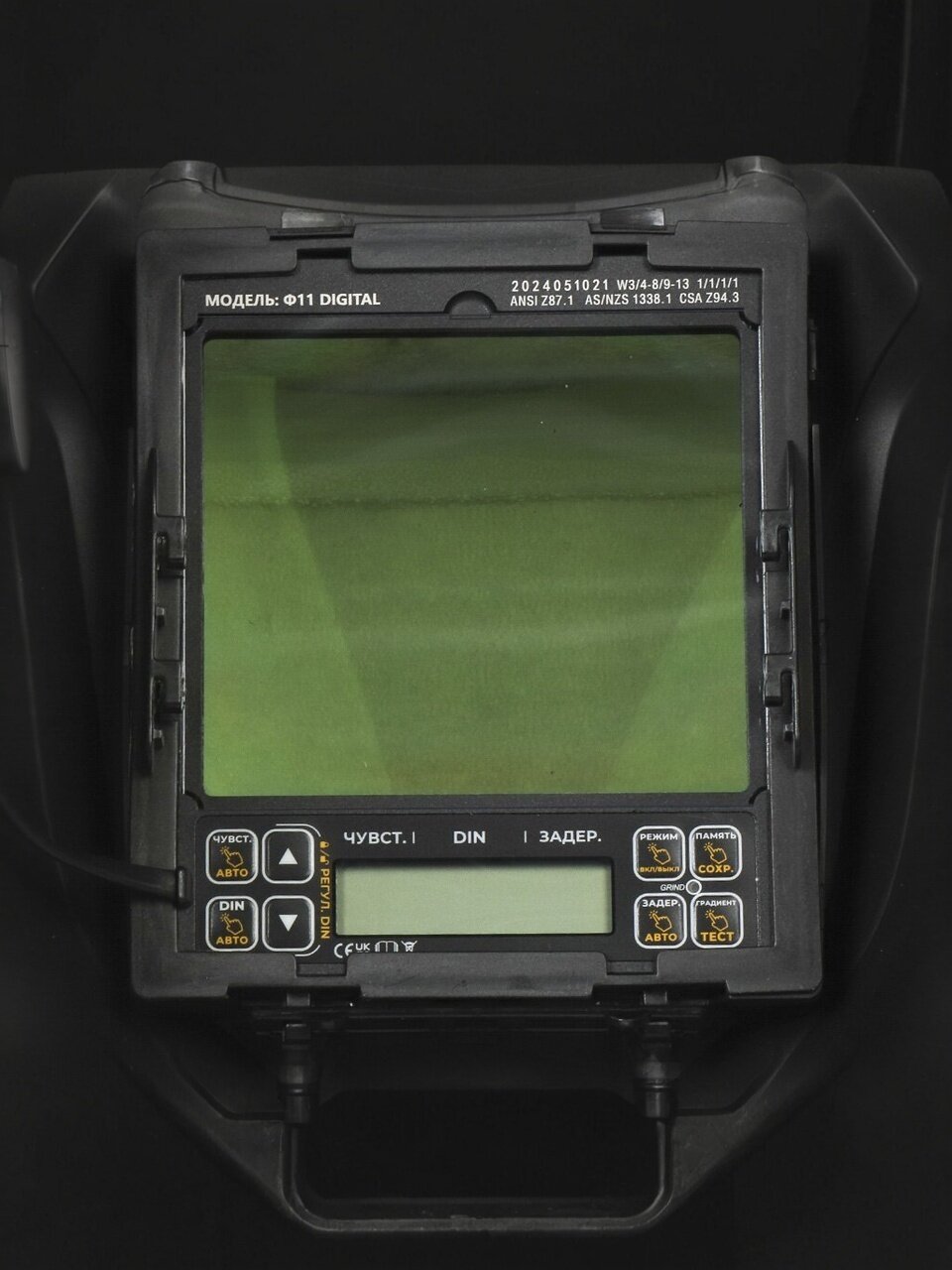 Светофильтр типа хамелеон автоматически адаптируется к изменению уровня освещенности, что позволяет сосредоточиться на выполнении задачи, не отвлекаясь на ручную регулировку. Это особенно актуально для специалистов, работающих в условиях переменчивого освещения. Модель Ф11 Digital обеспечивает широкий диапазон затемнения от 3/4 до 8/9-13 DIN, что делает ее универсальным инструментом для различных видов сварки.