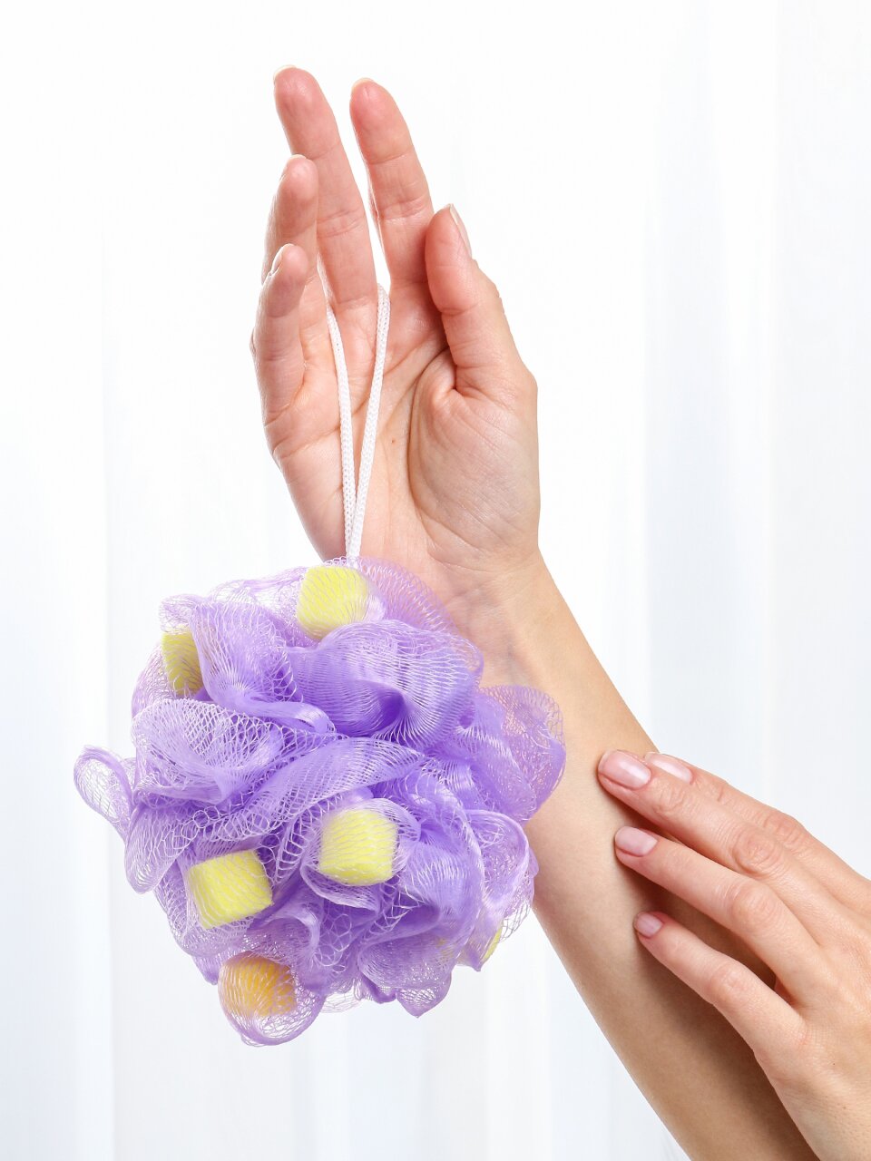 Мочалка шар, 13 см, нейлон с поролоном, с ручкой, средняя жесткость, 50 гр, в ассортименте, Aqwin