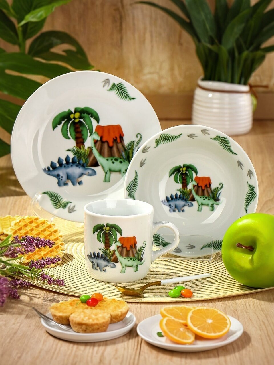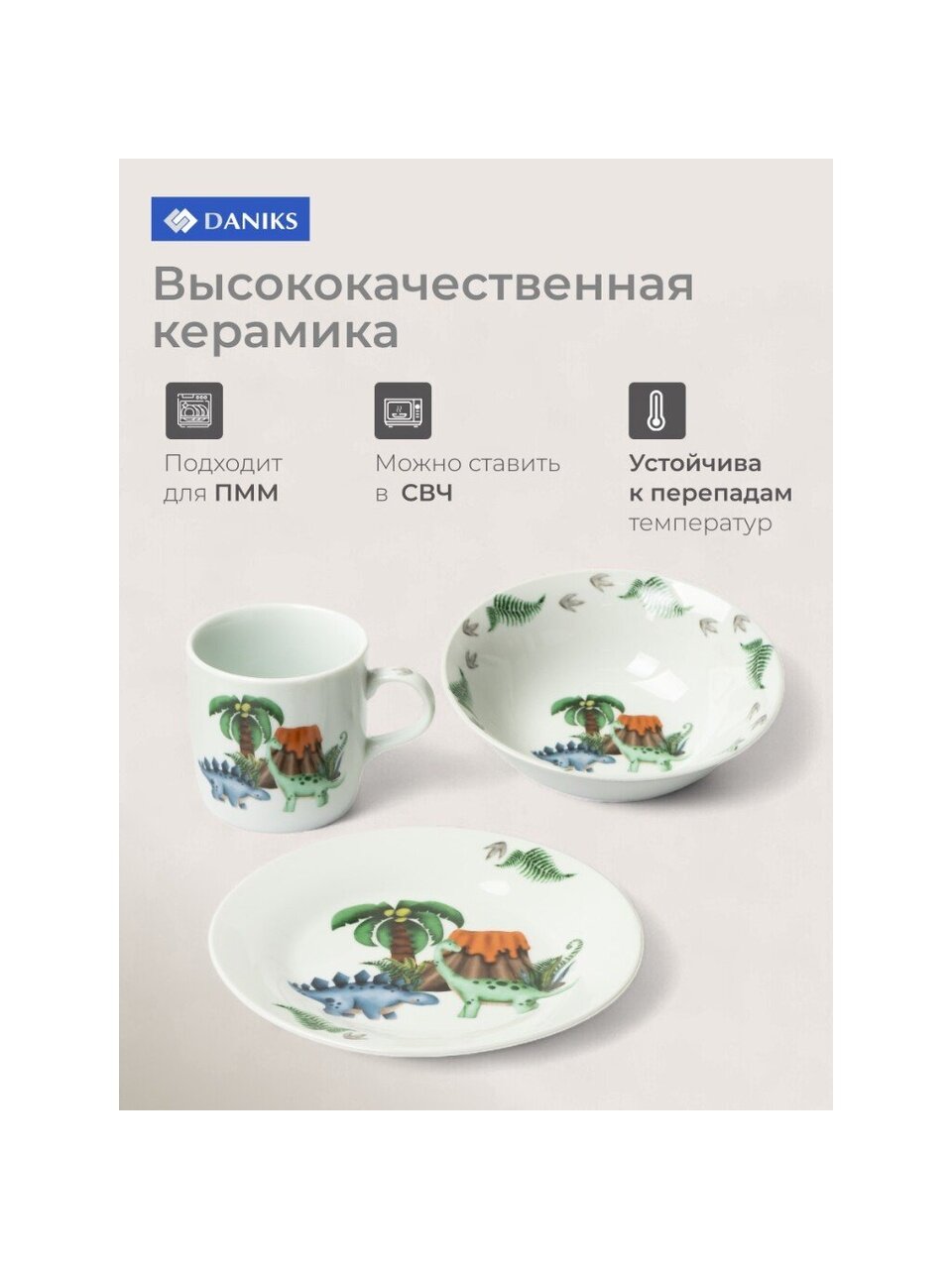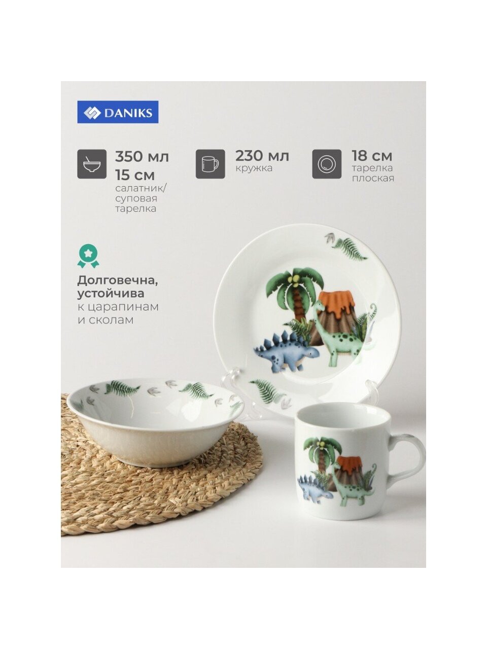 Вы можете приобрести «Набор посуды керамика, 3 шт, Динозавры, тарелка 18см, салатник 15см, кружка 230мл, Daniks» и другие товары в нашем интернет-магазине в Брянске по низким ценам и с бесплатным самовывозом.