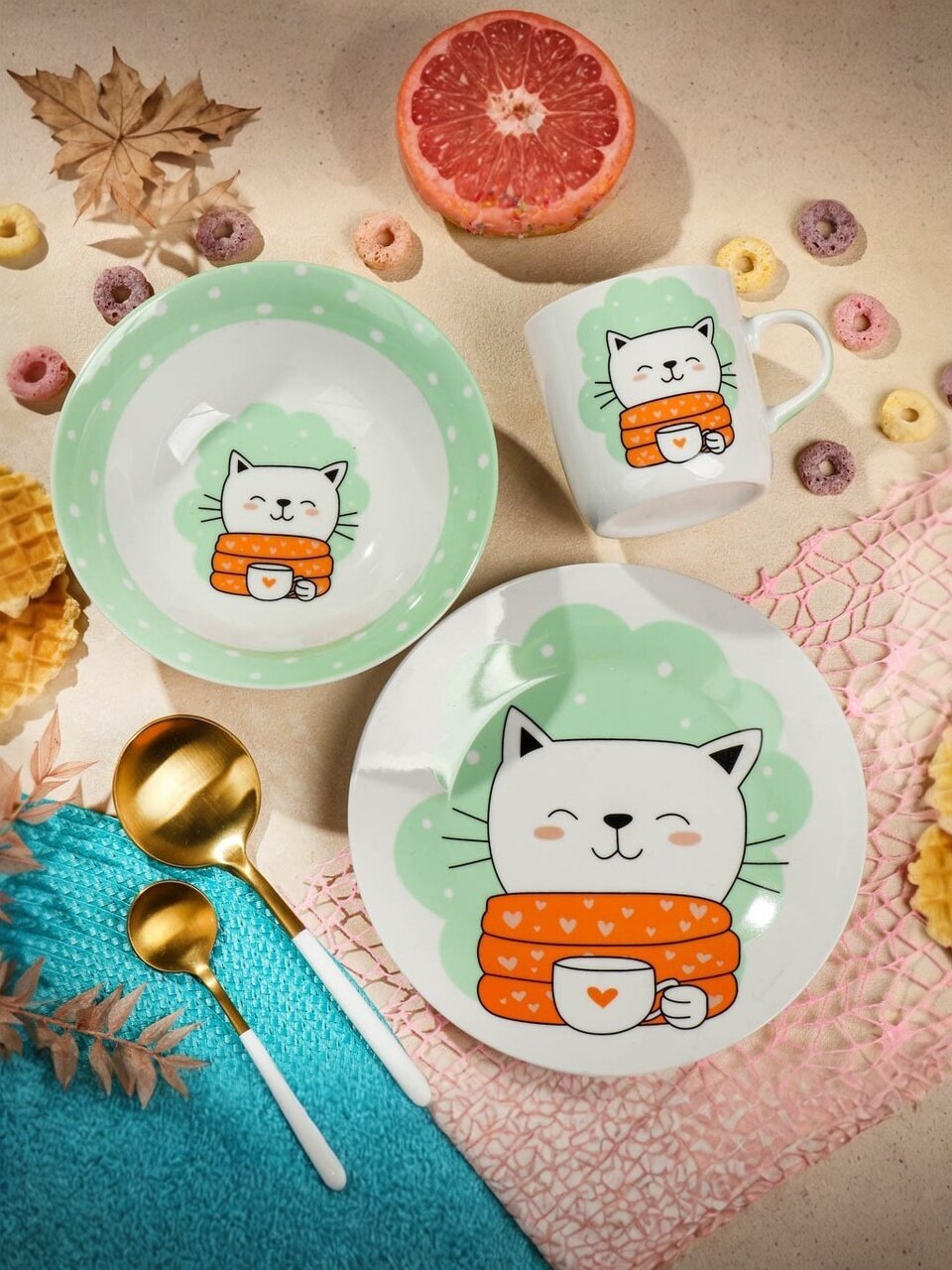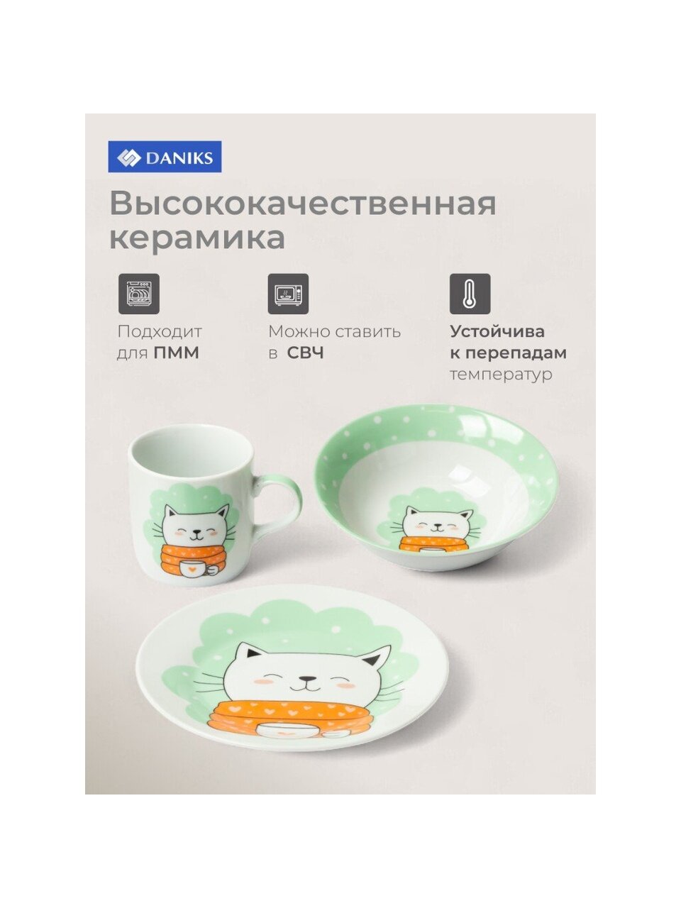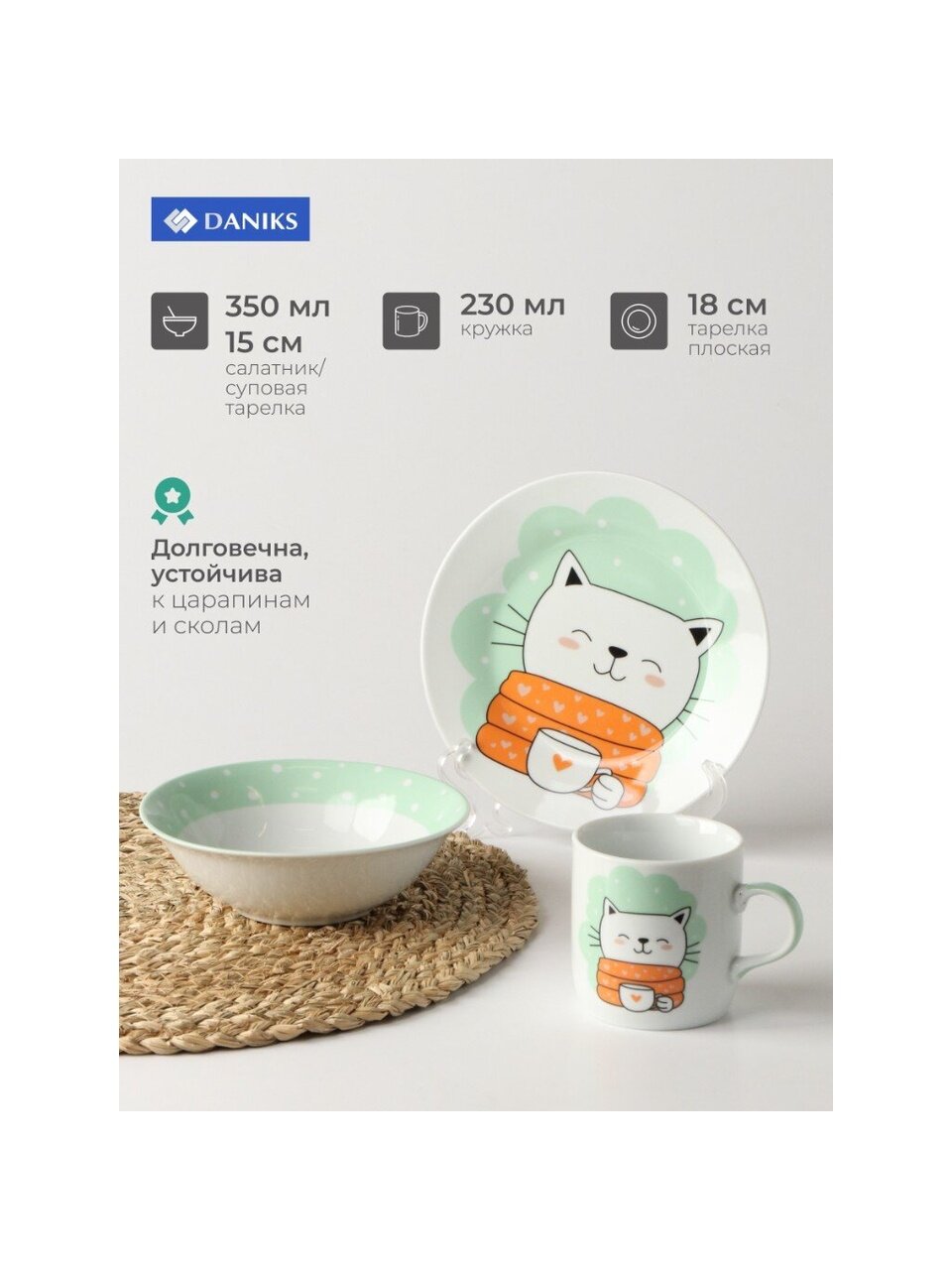 Вы можете приобрести «Набор посуды керамика, 3 шт, Котик, тарелка 17.5 см, салатник 15 см, кружка 230 мл, Daniks, C901» и другие товары в нашем интернет-магазине в Воронеже по низким ценам и с бесплатным самовывозом.