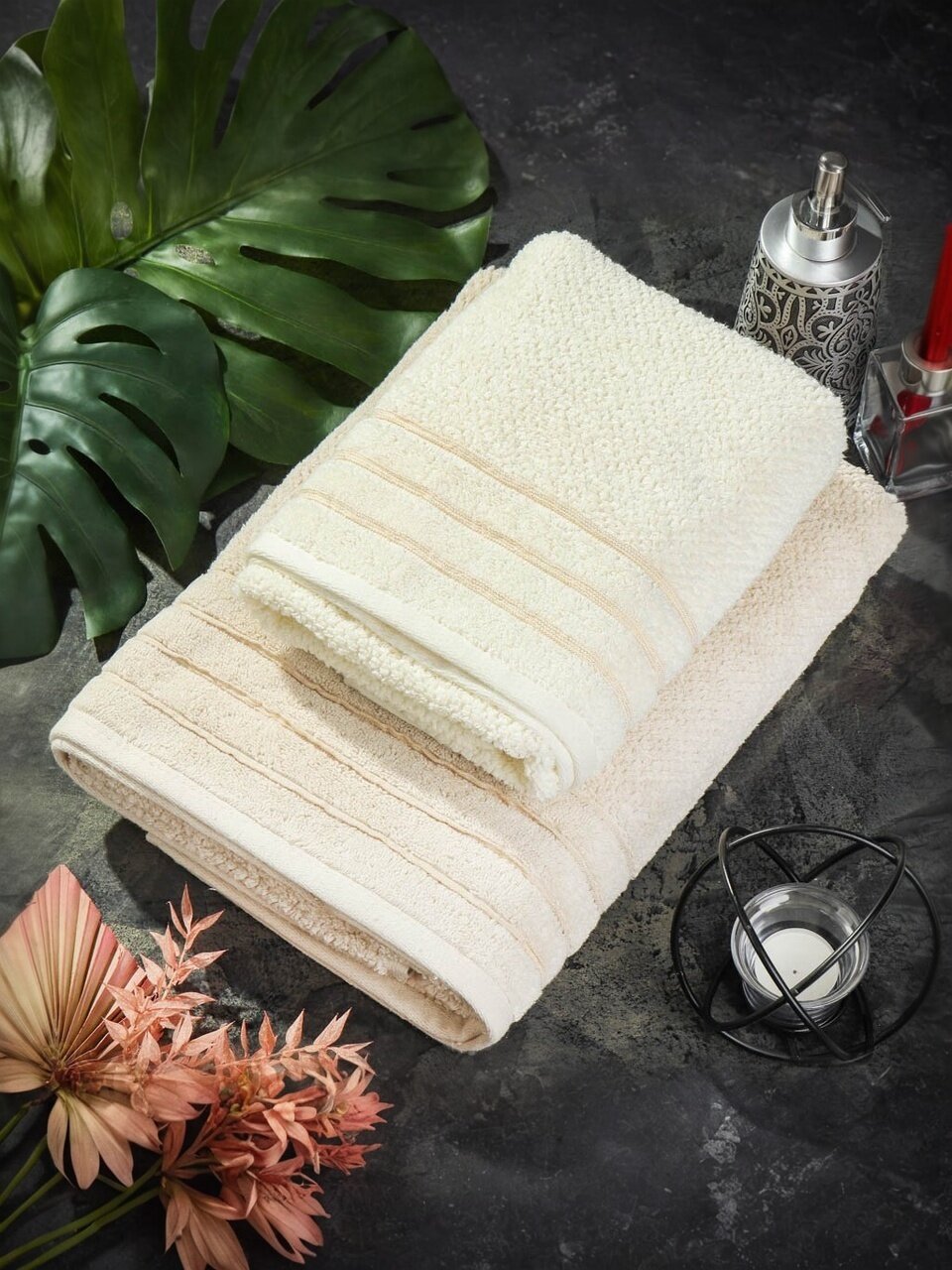Вы можете приобрести «Набор полотенец 2 шт, 50х90, 70х140 см, 100% хлопок, 500 г/м2, Люксори, светлый-молочно-бежевый, Узбекистан» и другие товары в нашем интернет-магазине в Астрахани по низким ценам и с бесплатным самовывозом.