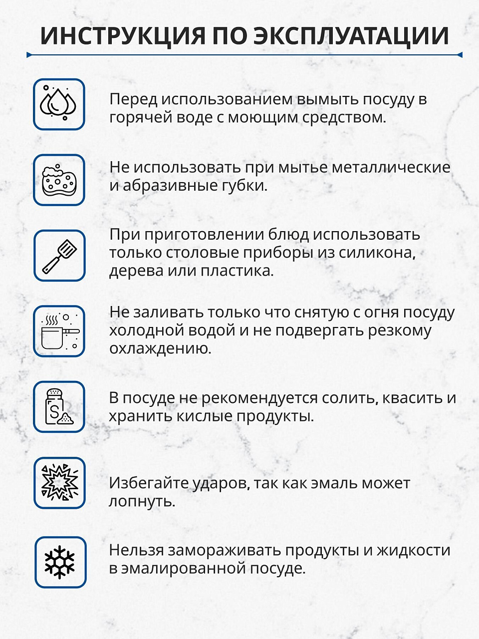 Эмалированная сталь не окисляется, не впитывает запахи, устойчива к царапинам и легко очищается. Подходит для хранения и приготовления любых продуктов.