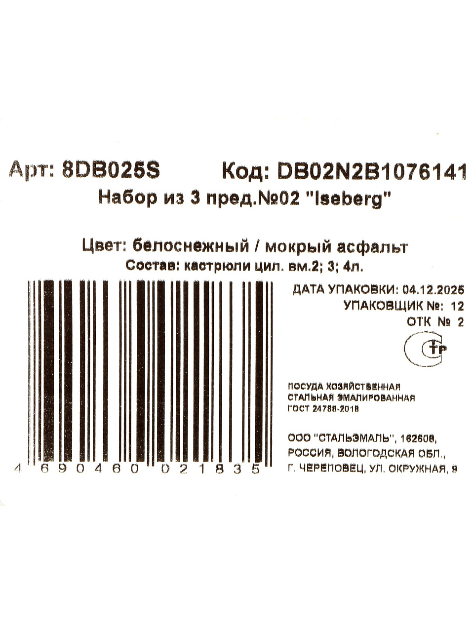 Вы можете приобрести «Набор посуды эмалированная сталь, 3 предмета, кастрюли 2, 3, 4 л, СтальЭмаль, Iseberg, 8DB025S» и другие товары в нашем интернет-магазине в Борисоглебске по низким ценам и с бесплатным самовывозом.