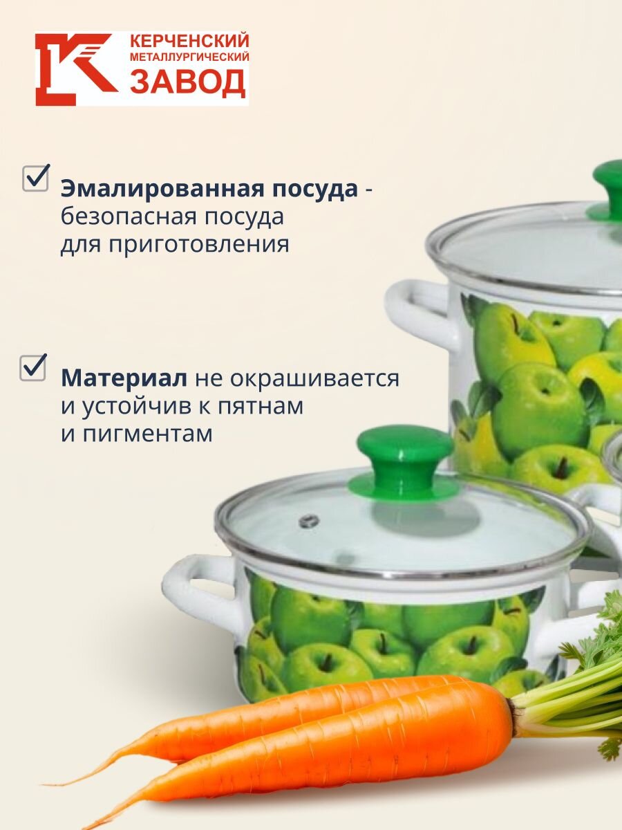 - Эмалированная сталь с рисунком «Поздние яблоки» — устойчивость к царапинам, безопасное хранение и готовка без посторонних запахов