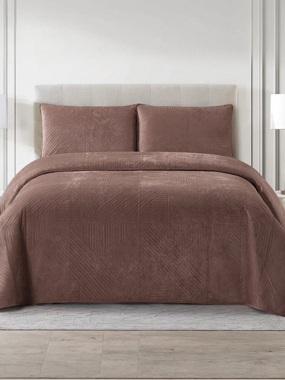 Набор создает уютную и стильную атмосферу в спальне, что помогает расслабиться и наслаждаться комфортом после долгого дня. Он также подчеркивает индивидуальность и вкус владельца, делая интерьер комнаты уникальным и привлекательным.