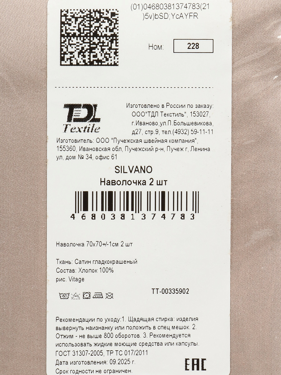 Наволочка 2 шт, Silvano, Vitage, сатин, 100% хлопок, 70 х 70 см - фото 1 от пользователя