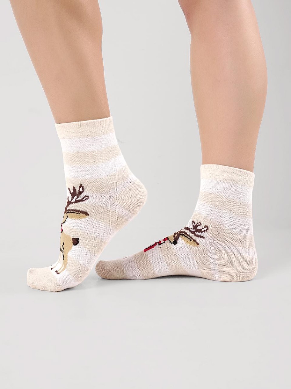 Женские носки Clever меланж бежевый, утеплённые, с новогодним дизайном и рисунком животных: уют для дома и оригинальный подарок по выгодной цене.