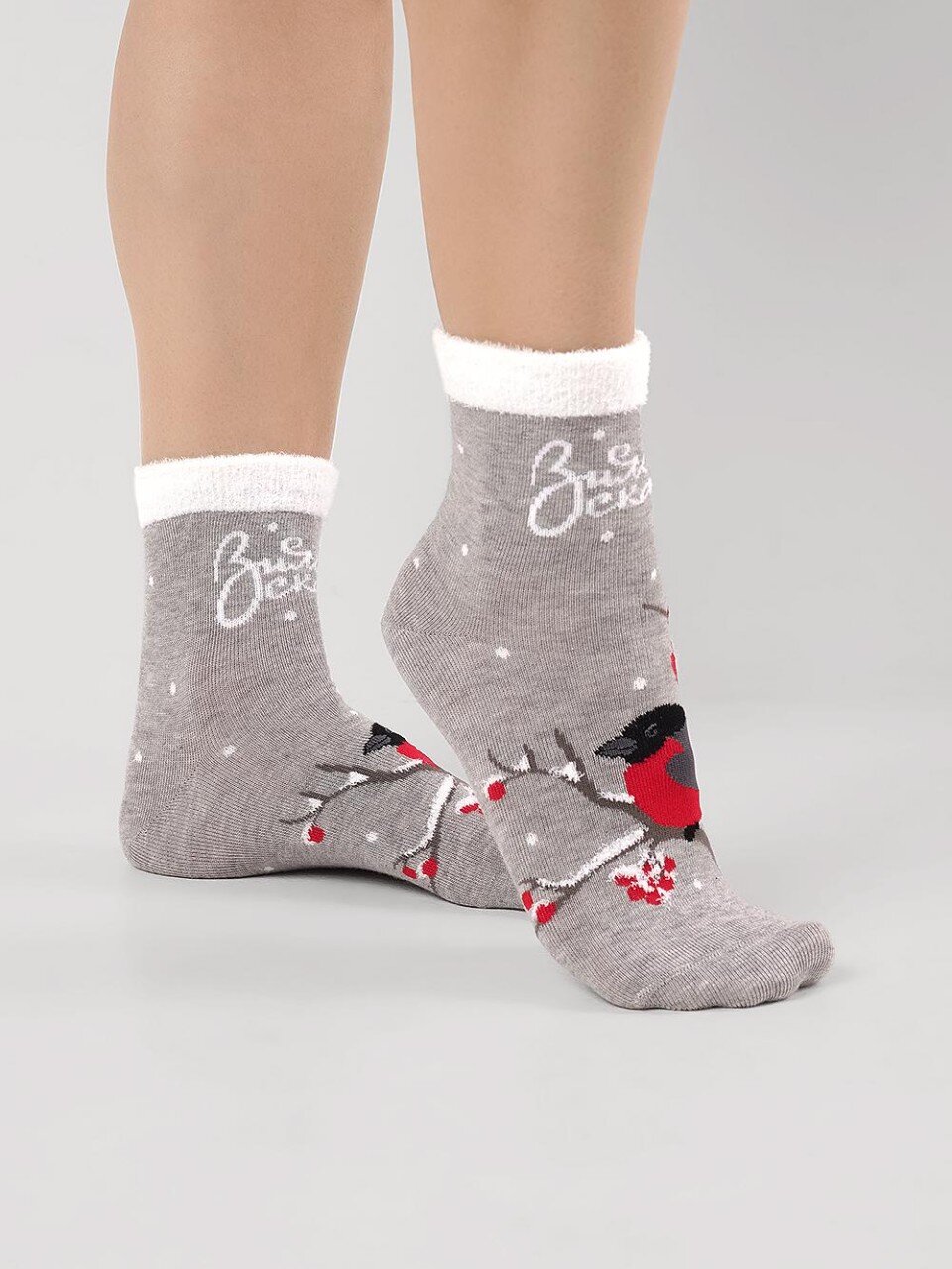 Тёплые женские носки Clever с новогодним рисунком «птицы» — идеальный выбор для зимы: комфорт, стиль и долговечность по доступной цене.