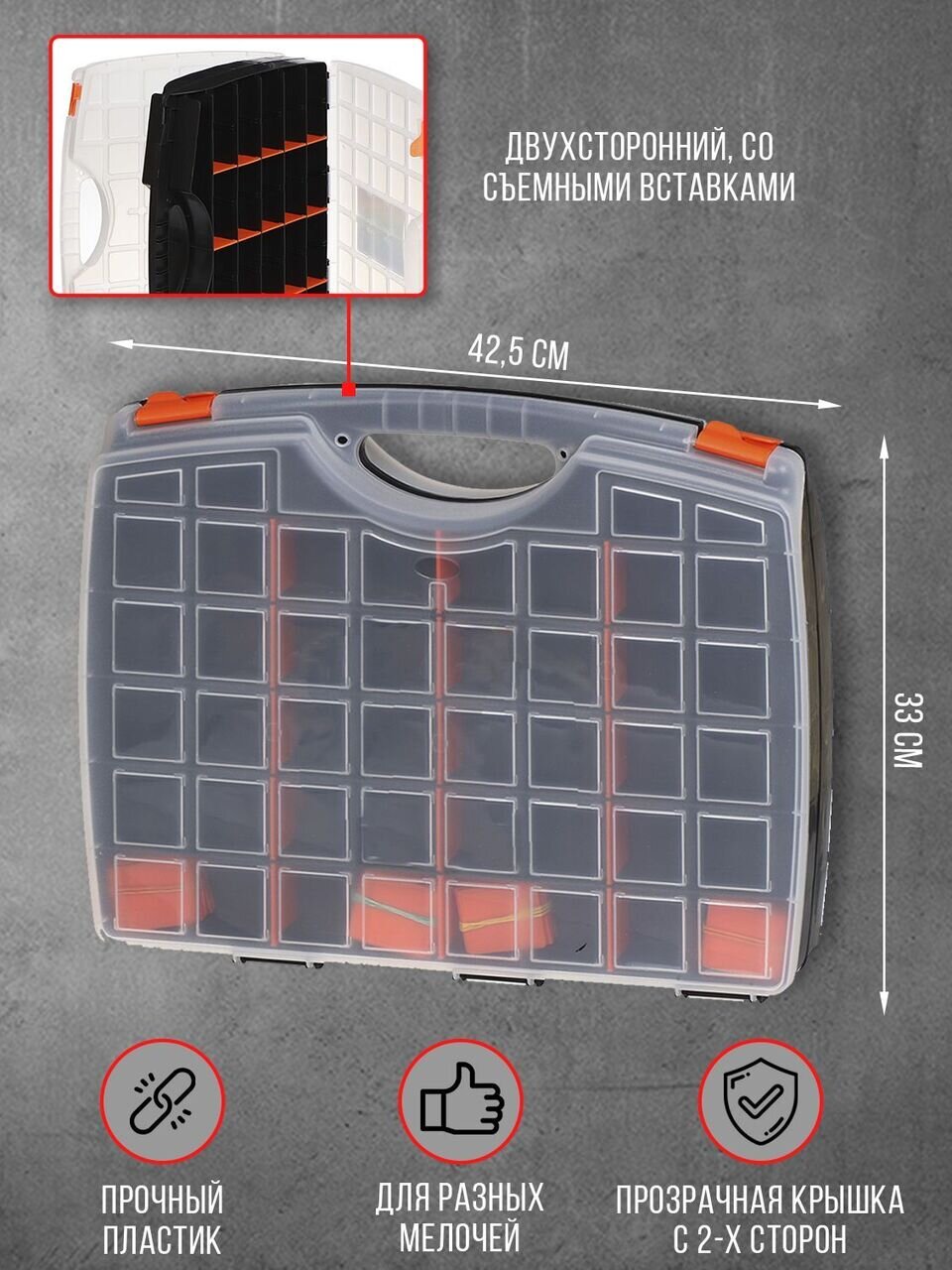 Вы можете приобрести «Ящик-органайзер для инструмента, двусторонний со сменными вставками, 42.5х33х8.5 см, Profbox, ЕD-40» и другие товары в нашем интернет-магазине в Ставрополе по низким ценам и с бесплатным самовывозом.