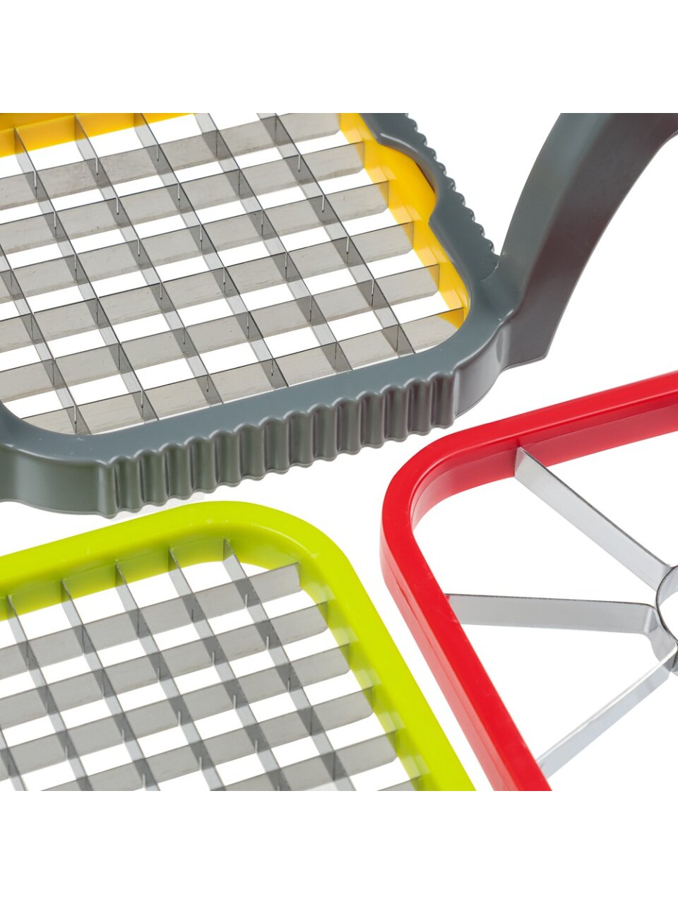 Модель универсальна — подходит для дома, дачи, подарка. Легко справляется с нарезкой овощей, фруктов, сыра, а компактные размеры позволяют хранить её даже в небольших кухонных ящиках.