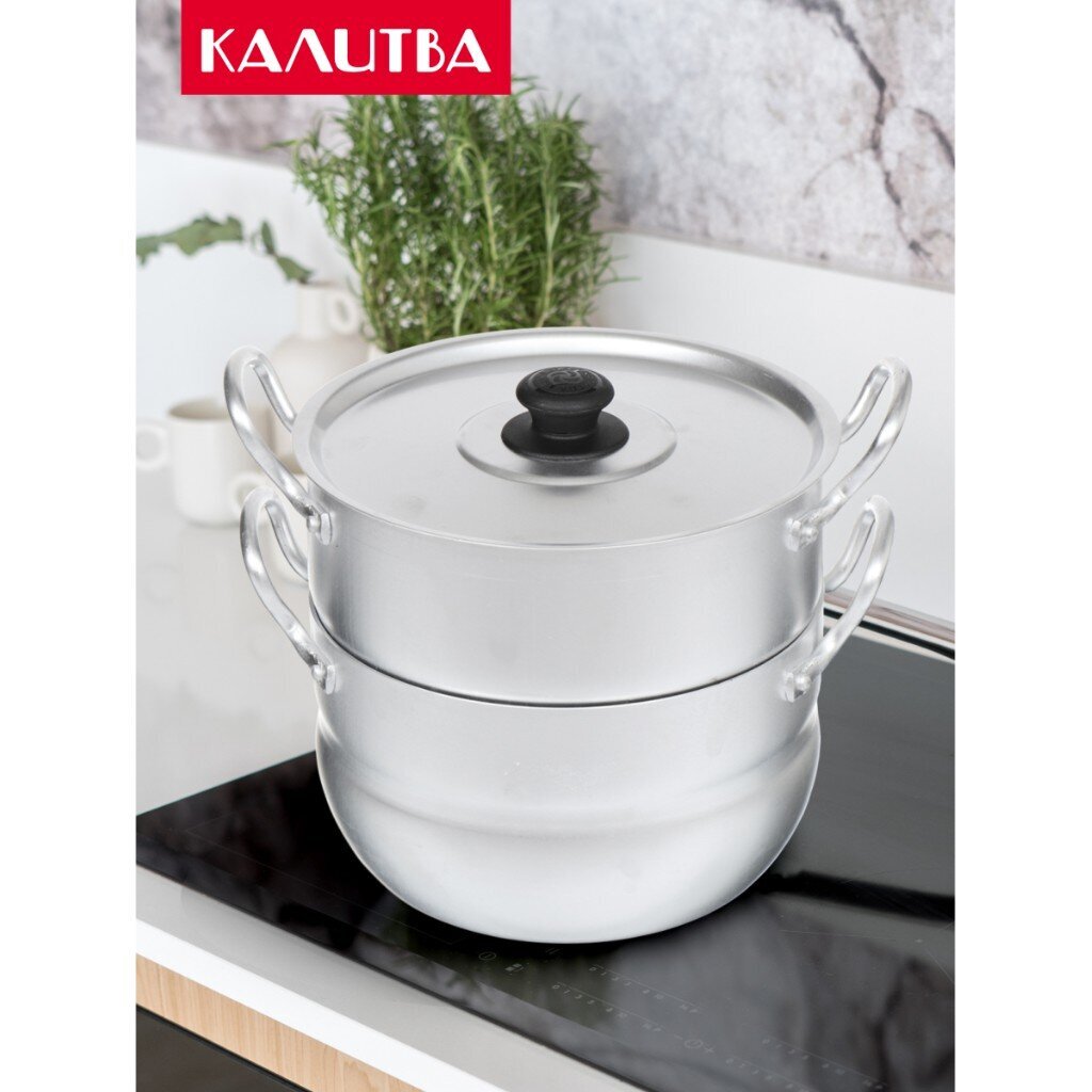 Кастрюля-пароварка "Калитва" изготовлена из качественного алюминия. Состоит из 2 уровней: нижней кастрюли и кастрюли с отверстиями в основании. Такая пароварка идеально подходит для приготовления и разогрева продуктов на пару: блюда быстро разогреваются, а материал хорошо сохраняет тепло. Такой способ приготовления продуктов сохраняет в них полезные витамины и минералы. Кастрюля оснащена удобными ручками и крышкой. Подходит для газовых и электрических плит.