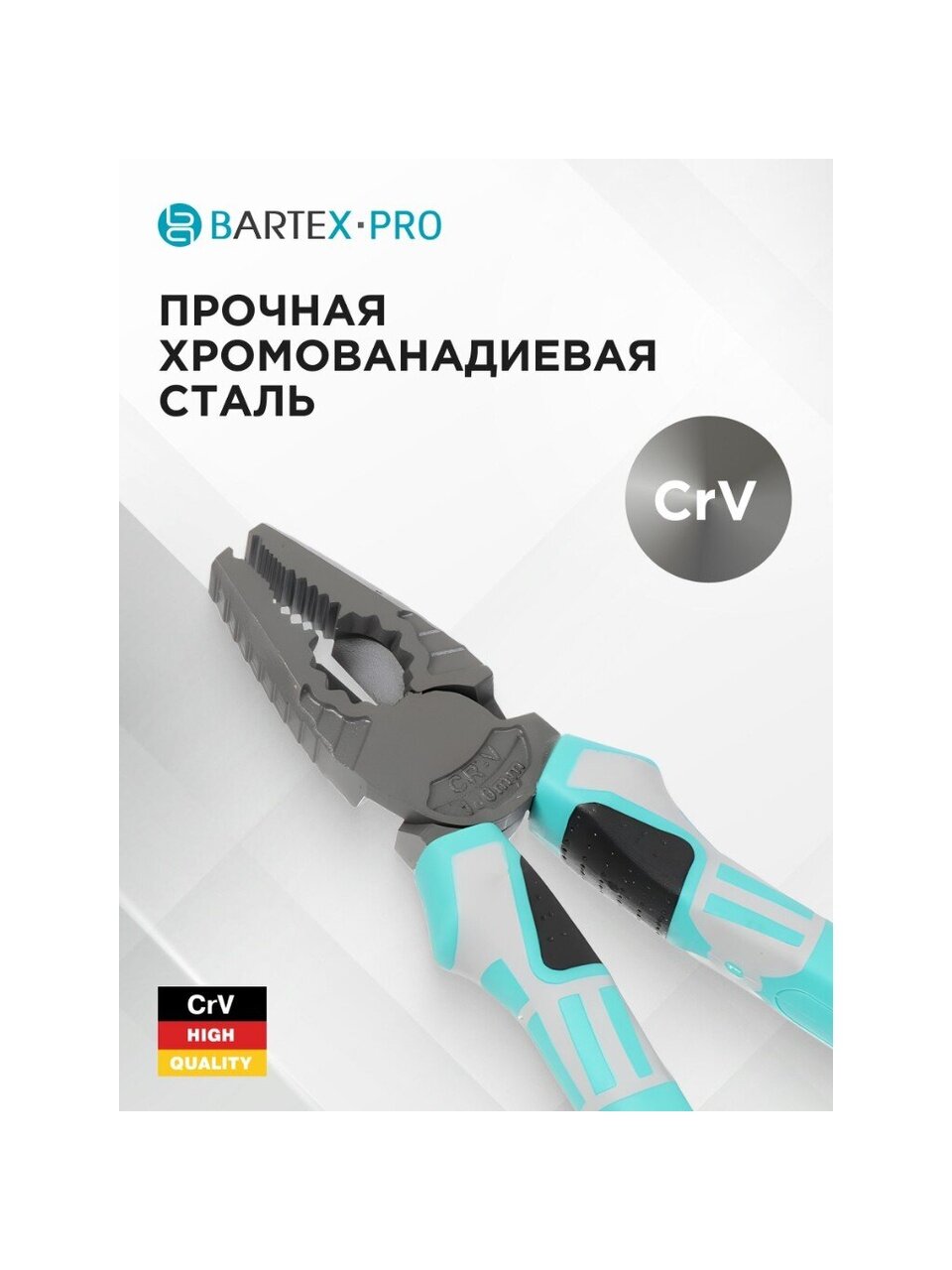 Пассатижи Bartex Pro предназначены для захвата деталей различных форм. Инструмент изготовлен из конструкционной стали, рукоятки выполнены из ударопрочной пластмассы.