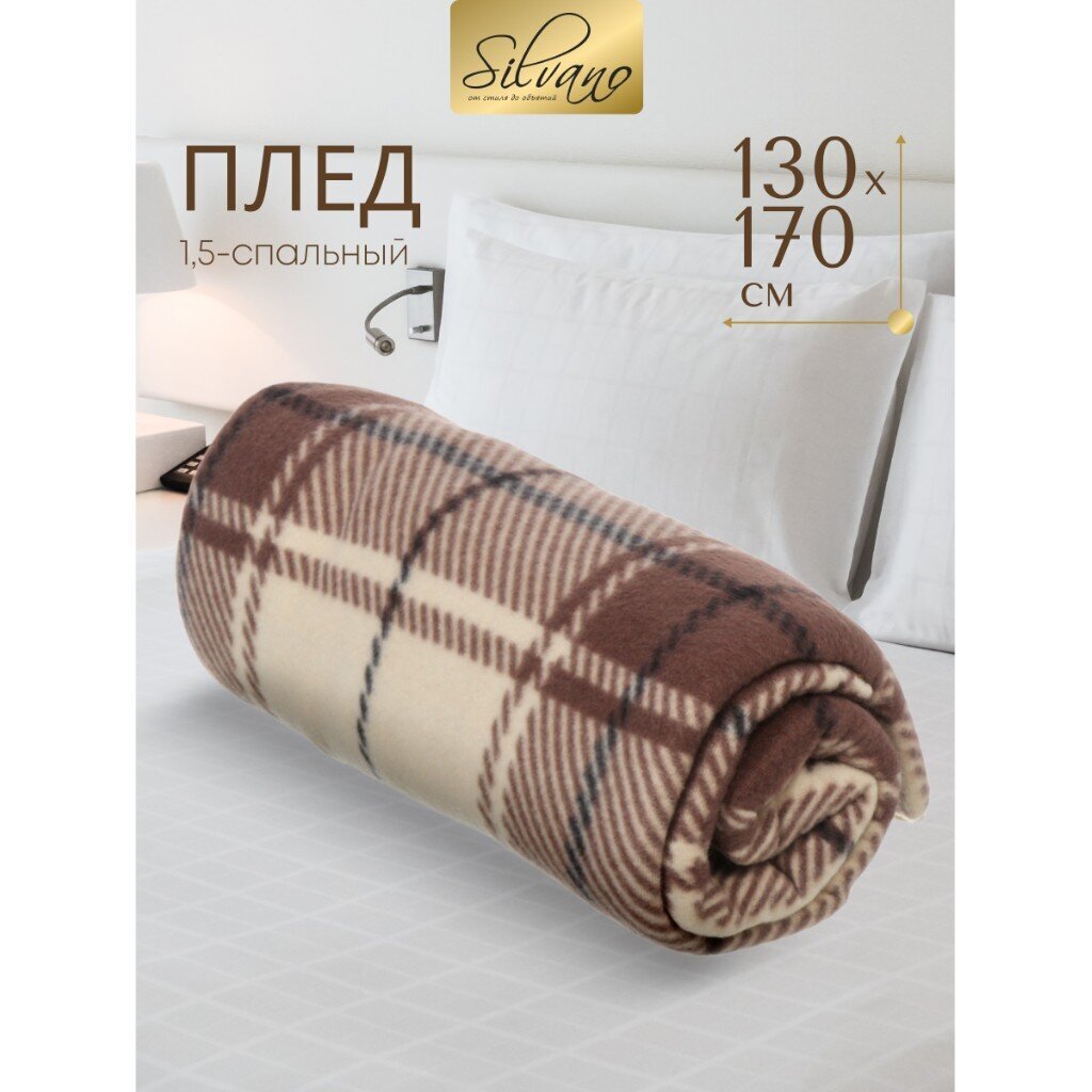 Плед 1.5-спальный Silvano, 130х170 см: уютный флис в бежевой клетке для дома, дачи и авто — тепло, комфорт и стиль по доступной цене.