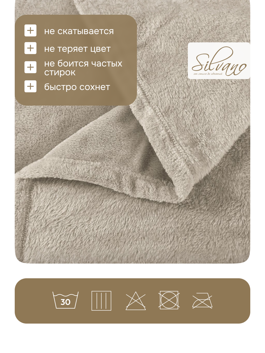 Плед Silvano Silvia Однотон выполнен из 100% полиэстера с коротким ворсом, что обеспечивает приятные тактильные ощущения и легкость ухода. Благодаря велсофт жаккардовой структуре, изделие сохраняет форму и не теряет цвет даже после многократных стирок при 30–40°C. Такой материал быстро сохнет, не вызывает аллергию и подходит для ежедневного применения в спальне, гостиной или на даче.