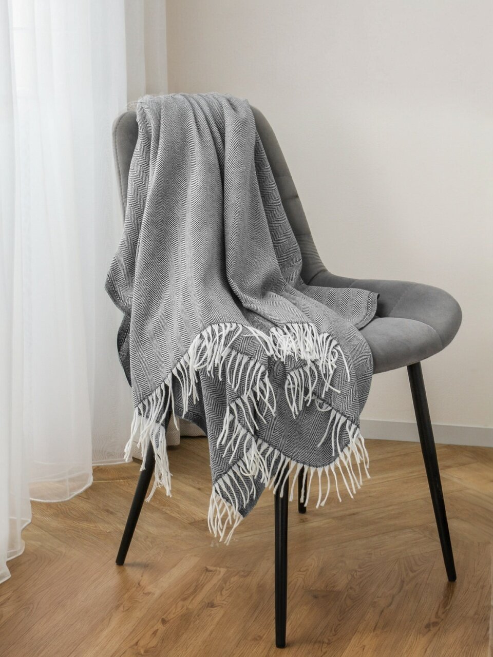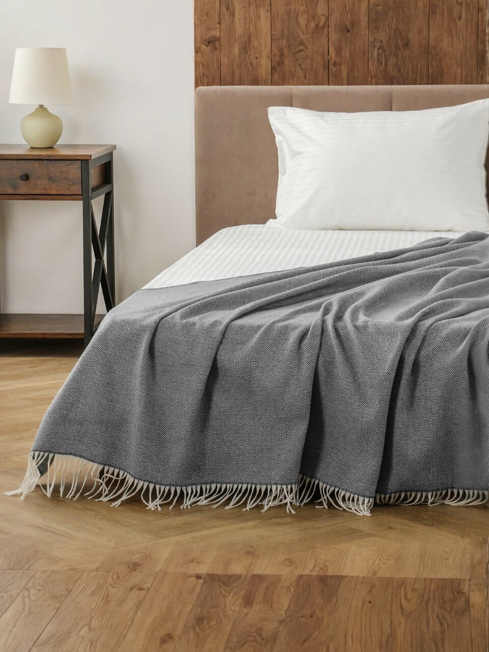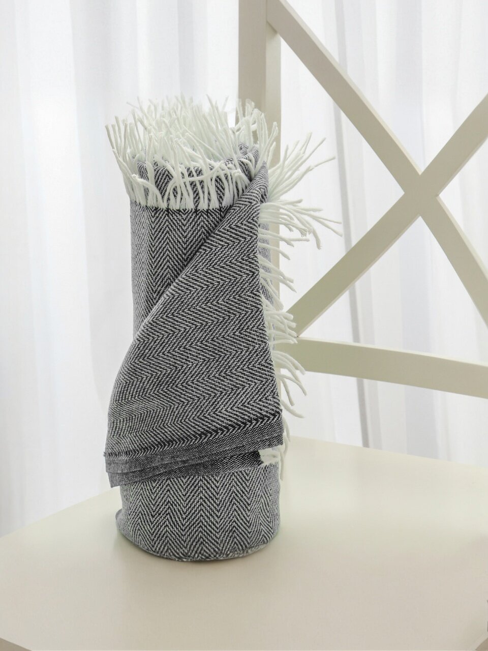 - Двусторонний плед с модным зигзагообразным орнаментом — стильный акцент в интерьере.