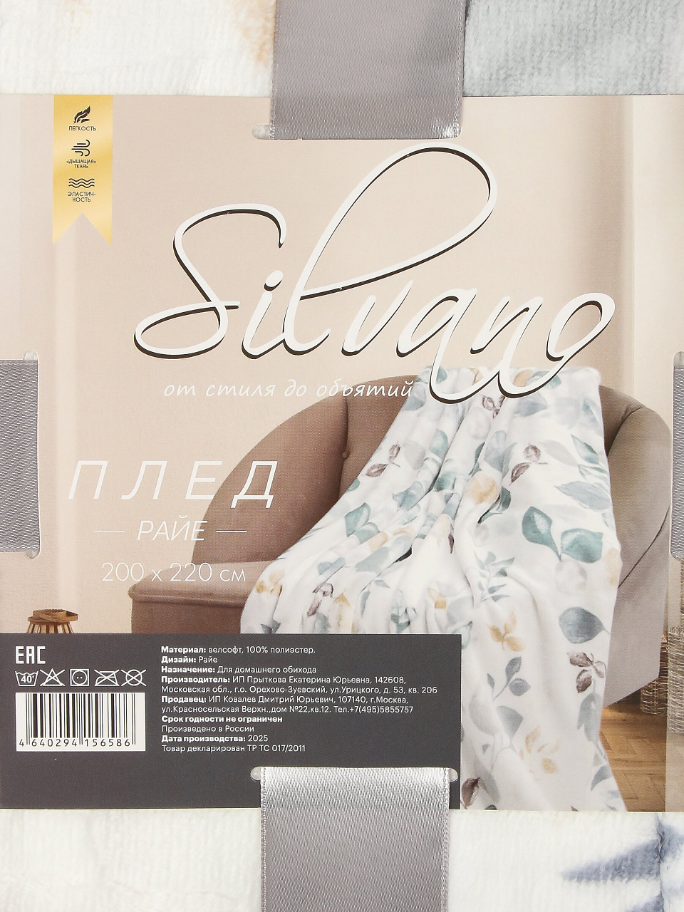 Плед евро Silvano Райе — это сочетание современного стиля, практичности и комфорта. Мягкая плюшевая ткань велсофт с коротким ворсом обеспечивает приятные тактильные ощущения и быстро согревает. Благодаря размеру 200х220 см, плед удобно использовать как покрывало на кровать, на диван или для уютных вечеров на даче. Если вы ищете, какой плед выбрать для спальни или гостиной, обратите внимание на этот вариант: он не только тёплый, но и не теряет форму после многочисленных стирок при 30–40 градусах.