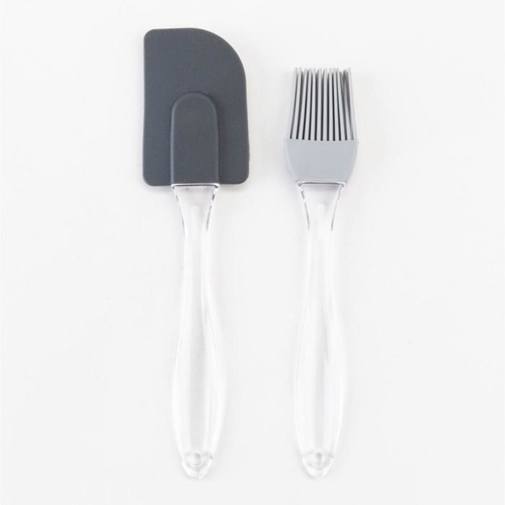 В набор входит 2 прихватки 19 × 19 см, силиконовые лопатка и кисточка.