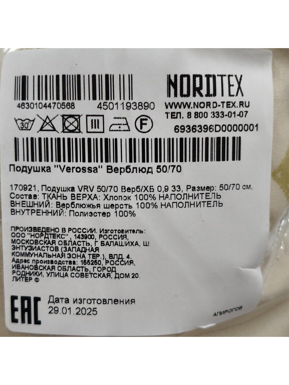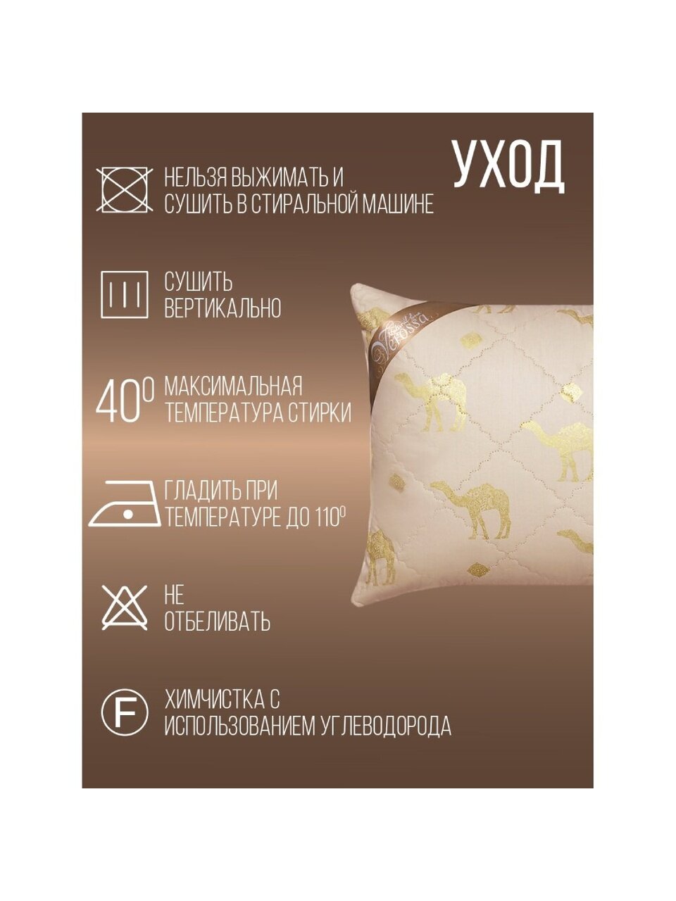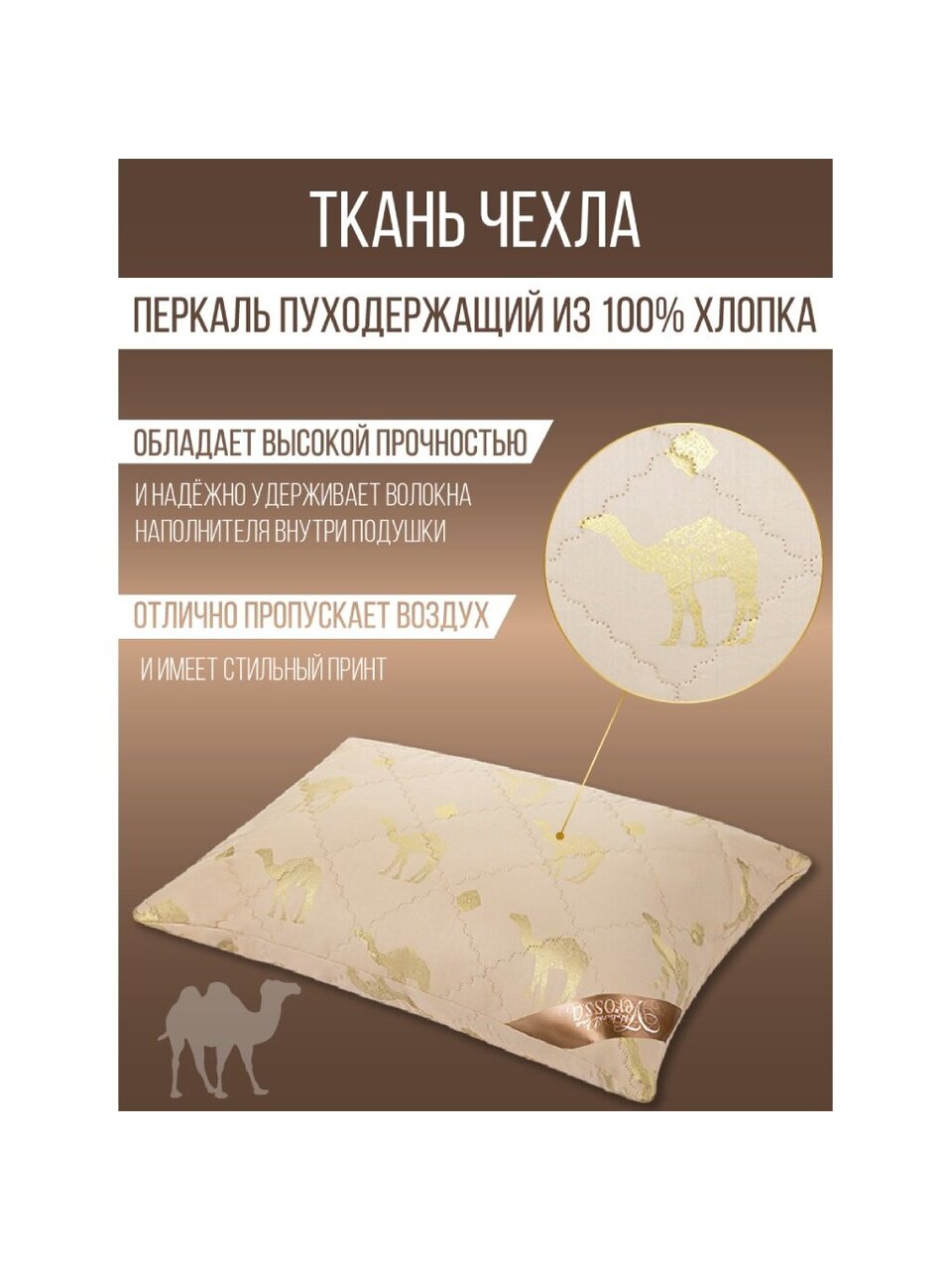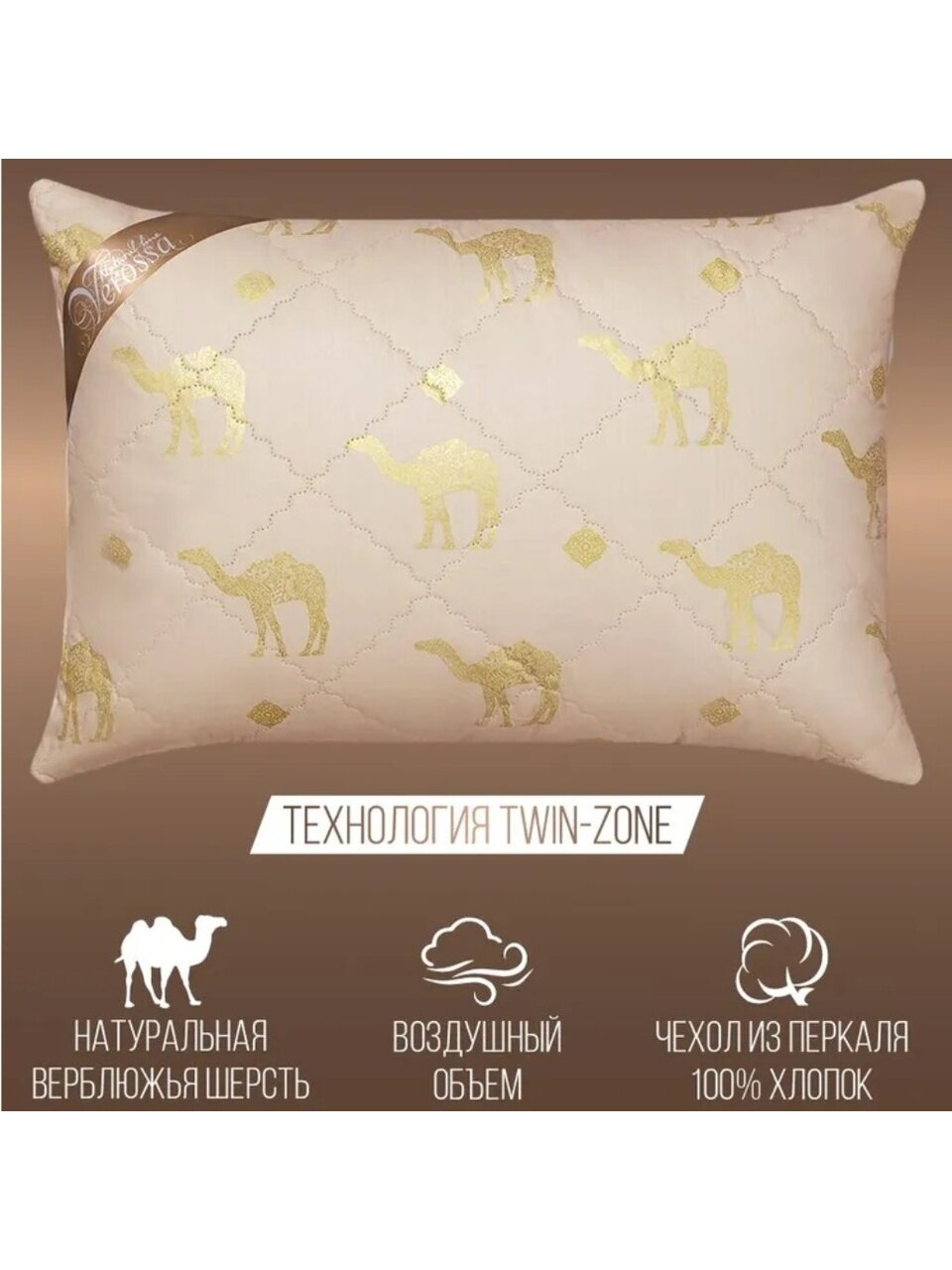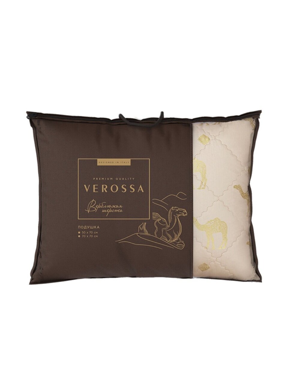 Подушка 50х70 см Verossa: натуральная верблюжья шерсть и чехол из 100% хлопка для глубокого сна и поддержки головы — оптимальный выбор для дома и дачи.