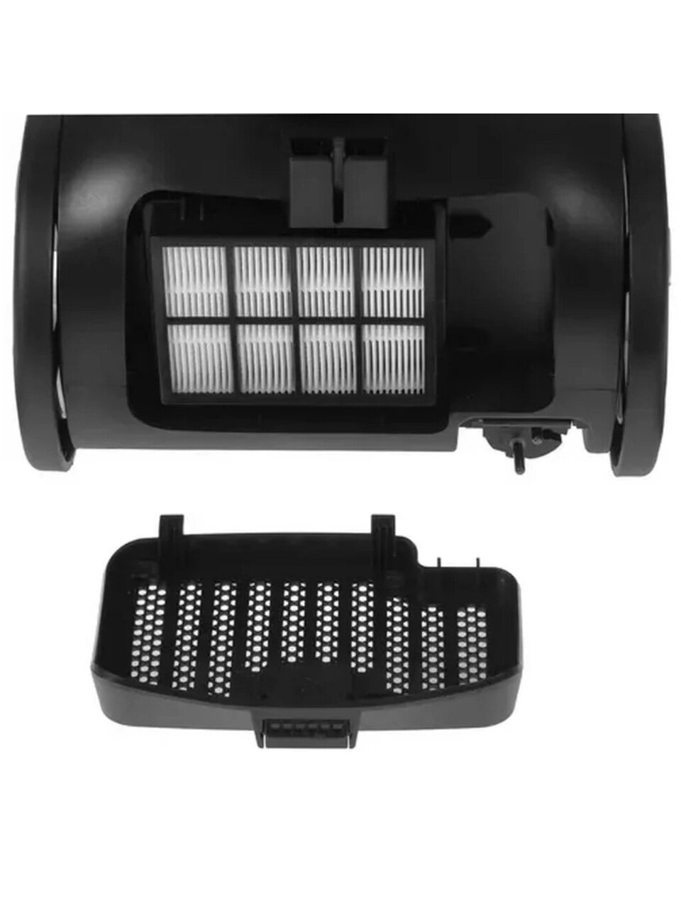 - Циклонный фильтр эффективно захватывает мусор с твердых и мягких поверхностей, очищая воздух.