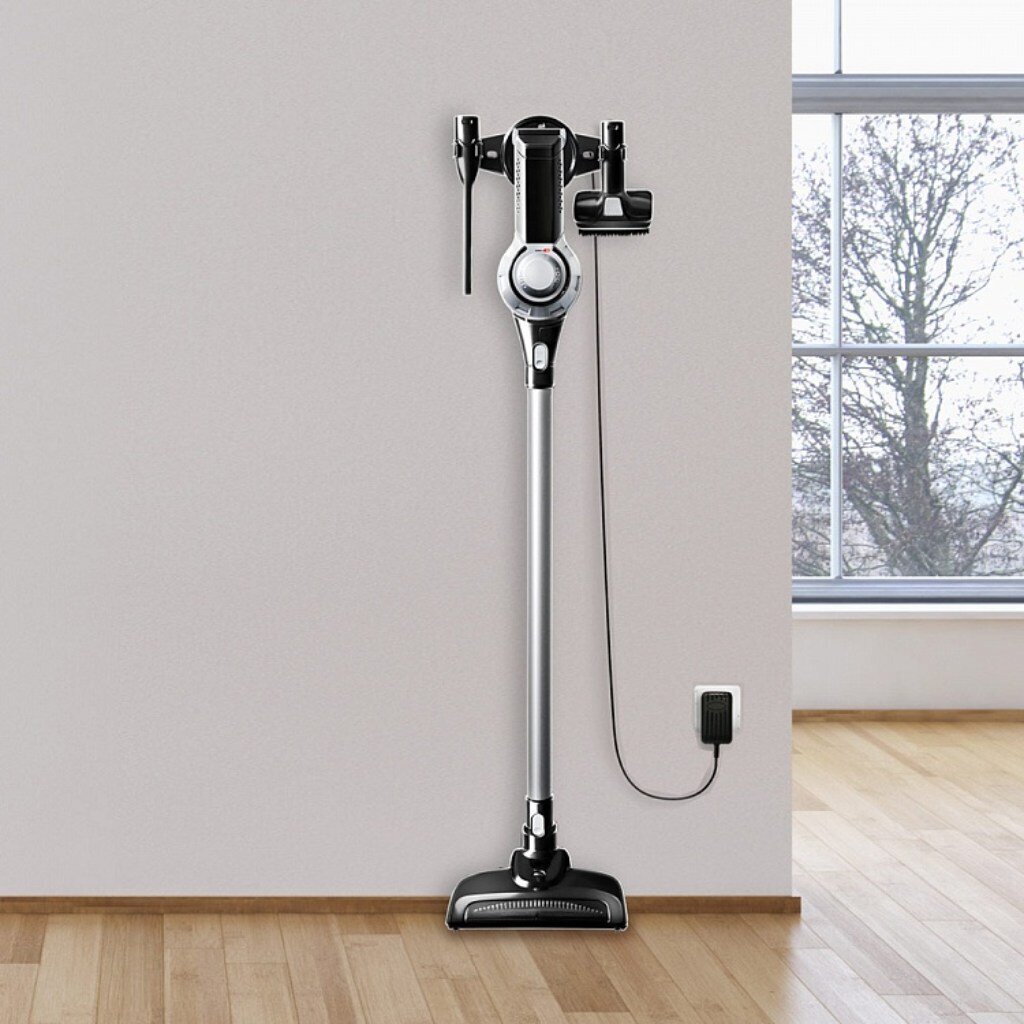 Аккумуляторный пылесос удобно хранить как в комнате, так и на закрытом балконе, в кладовке или в гардеробной. Он не занимает много места благодаря надежным креплениям для хранения в вертикальном положении у стены. Мощности аккумулятора RV-UR340 хватит для 25 минут беспрерывной работы. Время полной зарядки составляет 6 часов.