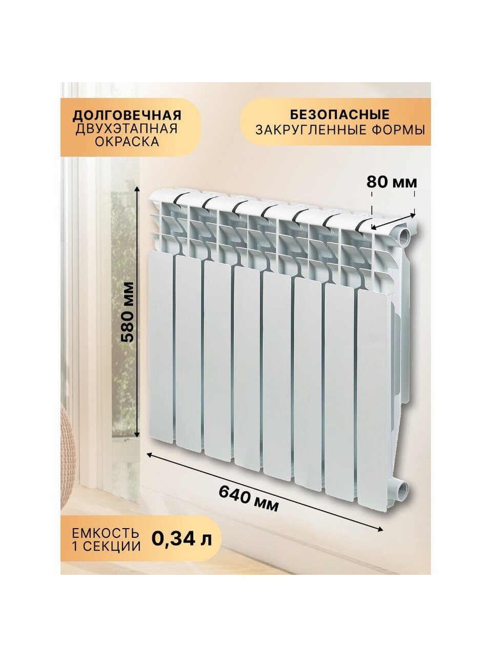 - Емкость 1 секции: 0.34 л.