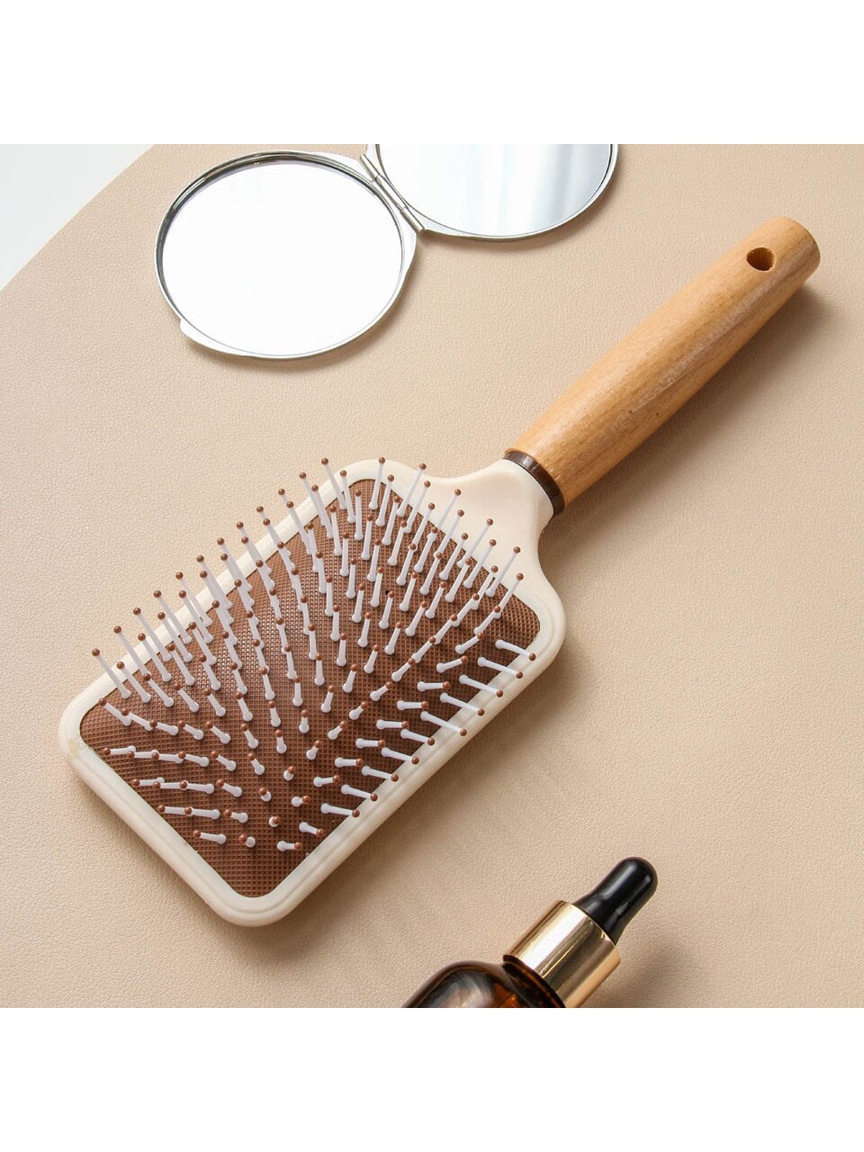 - Эффективный массаж и деликатное распутывание волос — благодаря эргономичной квадратной форме и деревянной ручке