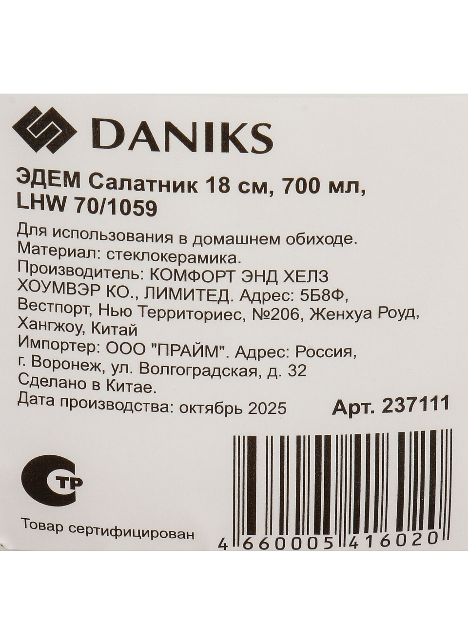 Вы можете приобрести «Салатник стеклокерамика, круглый, 18х6.9 см, 0.7 л, Эдем, Daniks, LHW 70/1059» и другие товары в нашем интернет-магазине в Ярославле по низким ценам и с бесплатным самовывозом.