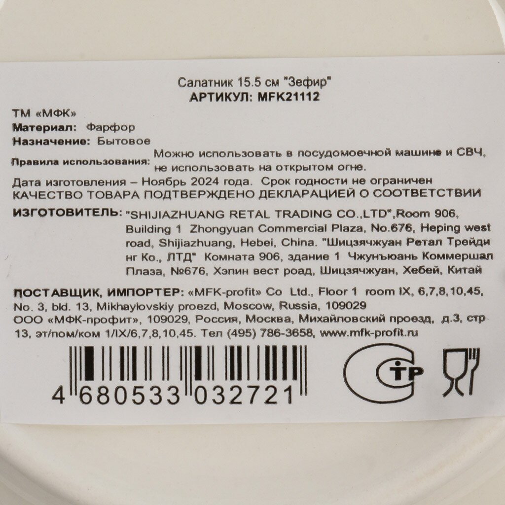 Вы можете приобрести «Салатник фарфор, круглый, 15.5х7.8 см, 0.7 л, Зефир, МФК, MFK21112» и другие товары в нашем интернет-магазине в Россоши по низким ценам и с бесплатным самовывозом.
