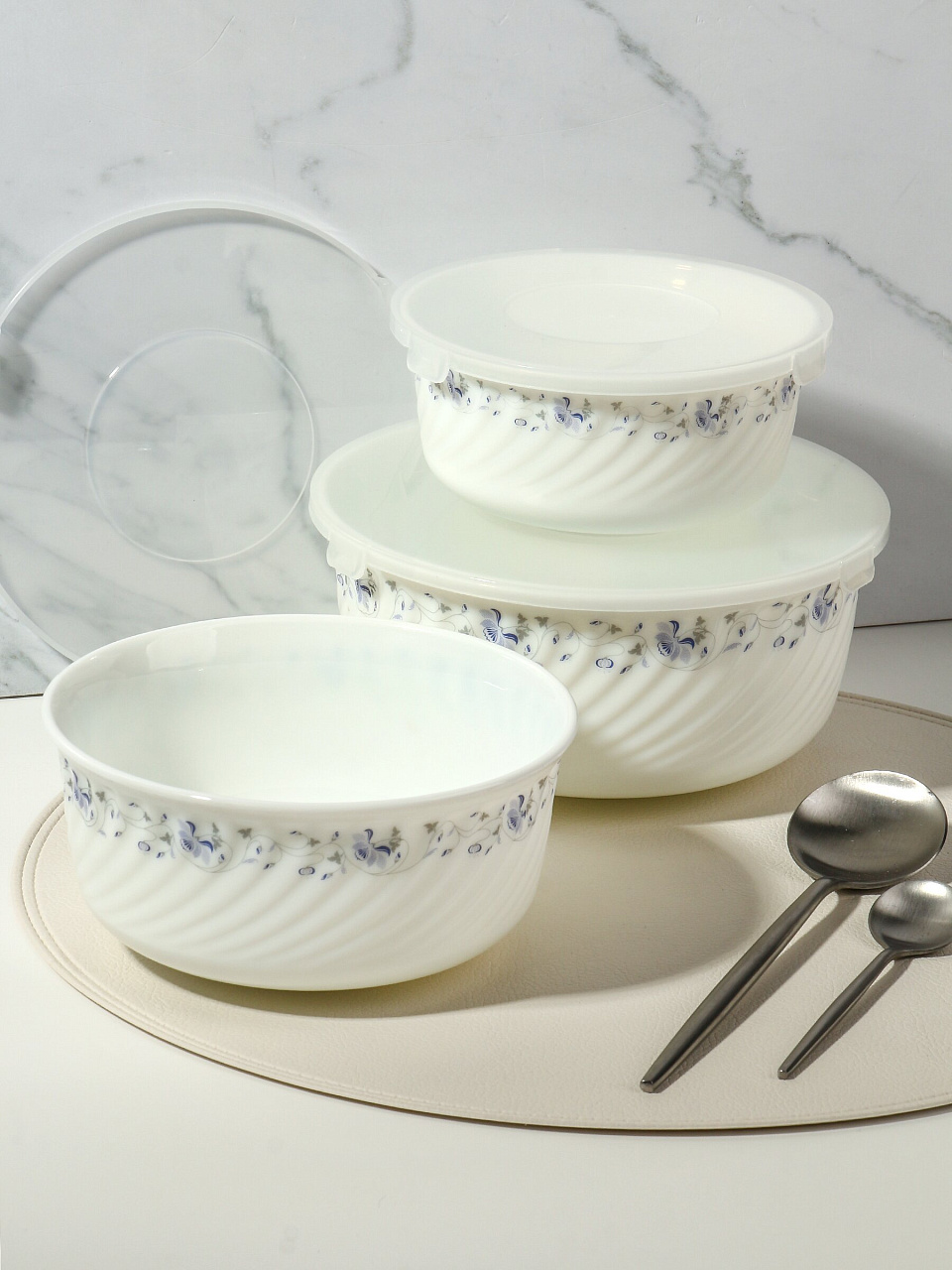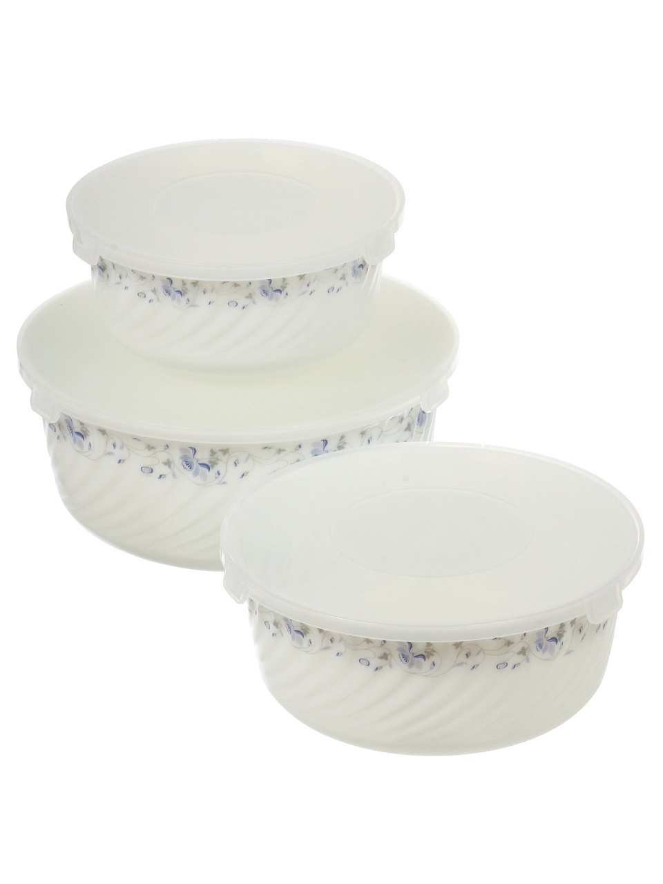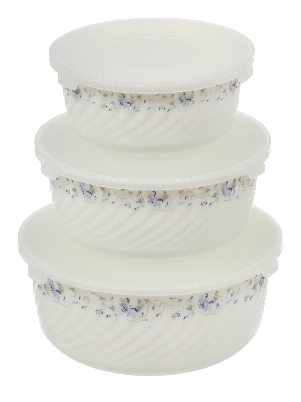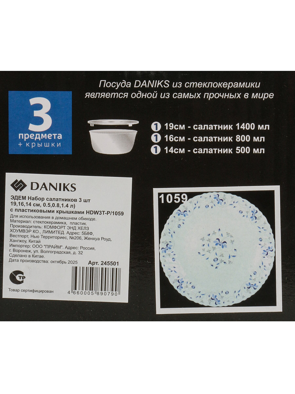 Салатники из стеклокерамики Daniks «Эдем» (набор 3 шт: 1.4, 0.8, 0.5 л) с крышками — стильный выбор для сервировки, хранения и подачи блюд дома и на даче.