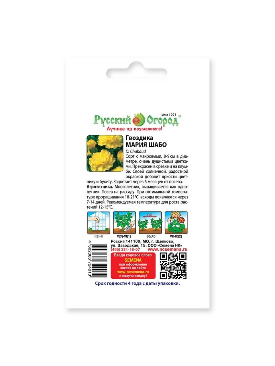 Вы можете приобрести «Семена Цветы, Гвоздика, Мария Шабо, 0.1 г, цветная упаковка, Русский огород» и другие товары в нашем интернет-магазине в Клинцах по низким ценам и с бесплатным самовывозом.
