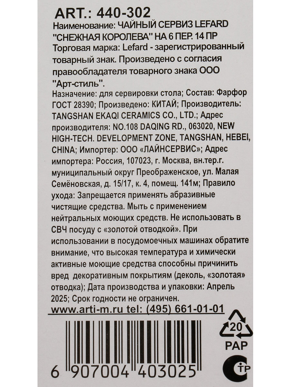 Чайный сервиз Lefard «Снежная королева» на 6 персон: 14 предметов из фарфора, идеальный подарок и уют для вашего дома — премиум-качество по доступной цене.
