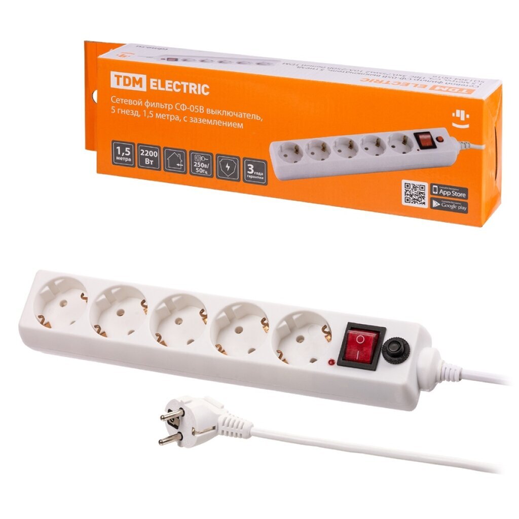 Вы можете приобрести «Сетевой фильтр 5 гнезд, 1.5 м, ПВС, 3х0.75 мм², с заземлением, 10 А, выключатель, белый, TDM Electric, СФ-05В, SQ1304-0016» и другие товары в нашем интернет-магазине в Воронеже по низким ценам и с бесплатным самовывозом.