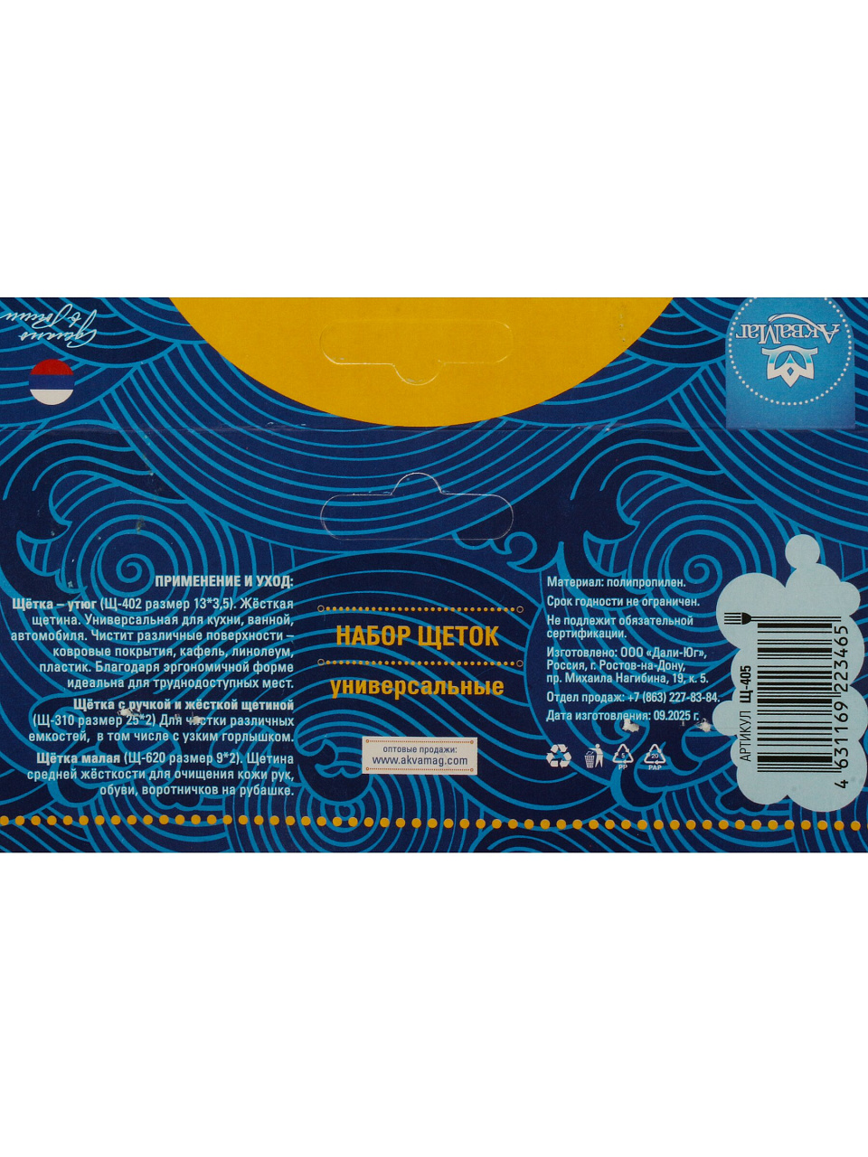 Универсальный набор щеток Аквамаг (3 шт): прочная чистка для дома, дачи и мастерской — идеальный выбор по цене и долговечности.