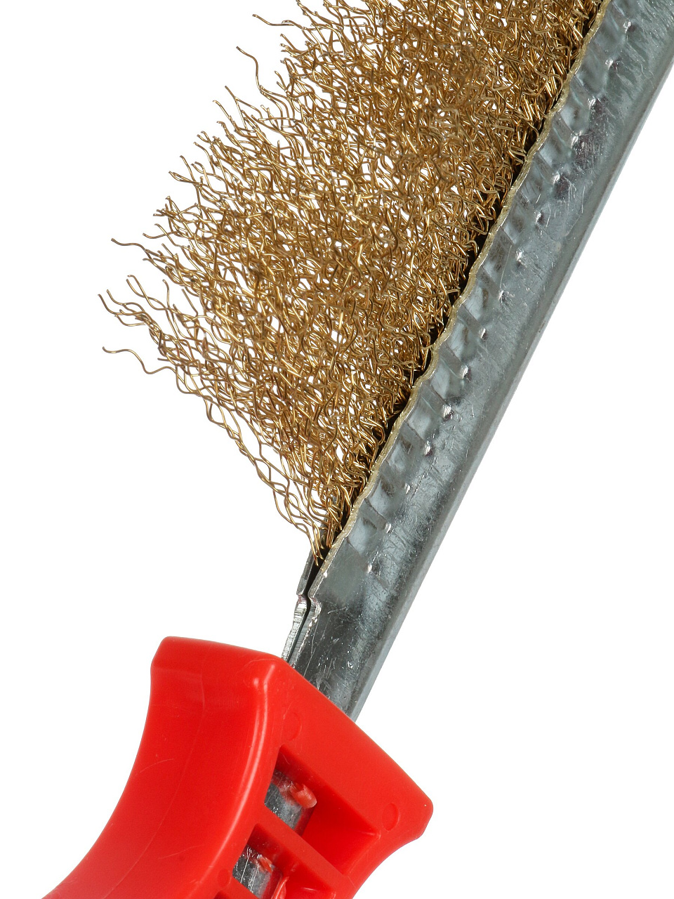 Пластиковая рукоятка устойчива к воздействию влаги и химикатов, не натирает ладонь, что особенно важно при длительной работе. В отличие от аналогов с жесткой стальной щетиной, медная щетка Bartex не царапает мягкие металлы и идеально подходит для деликатных работ. Ответ на популярный вопрос: «Подходит ли для очистки меди, алюминия, латуни?» — да, благодаря мягкости медного ворса щетка не оставляет глубоких следов и не повреждает структуру материала.