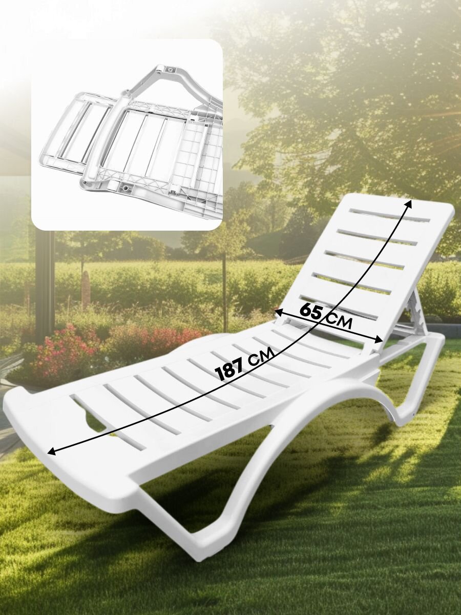 Шезлонг Adriano Classic выделяется своей универсальностью и продуманным дизайном. Его белый цвет добавляет элегантности и легко вписывается в любой окружающий ландшафт. Благодаря длине 187 см и ширине 65 см, лежак обеспечивает просторное место для отдыха. Высота 30 см делает посадку и подъем легкими и удобными.