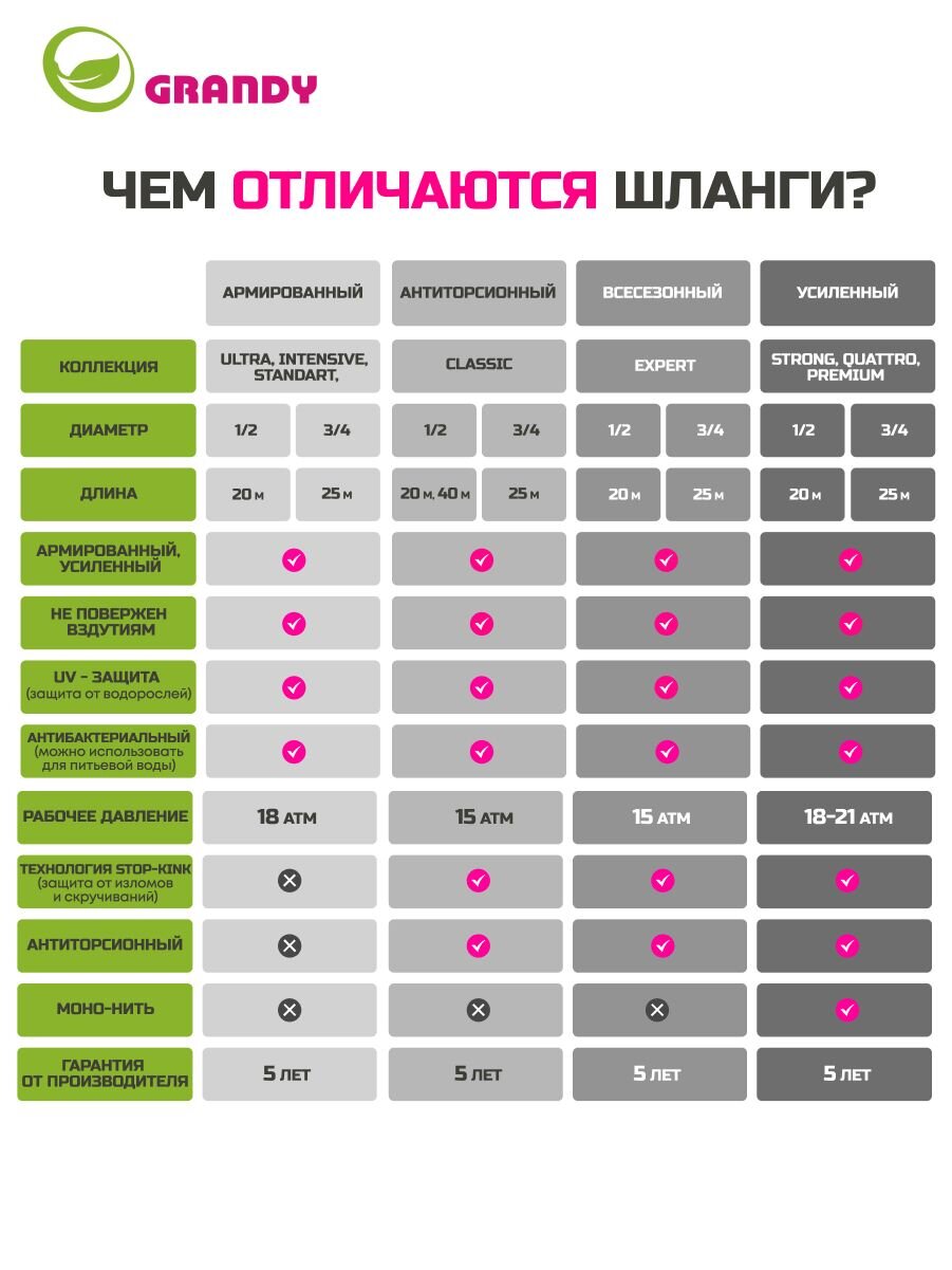 Шланг Grandy обладает всеми необходимыми характеристиками: очень прочный, гибкий и устойчивый к скручиванию, что делает его идеальным для использования в любых условиях. Материал, из которого изготовлен шланг, прекрасно справляется с воздействием солнечных лучей, благодаря чему шланг не выгорает и не портится со временем.