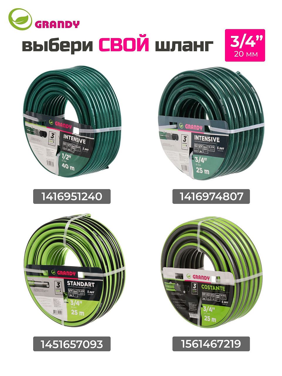 Вы можете приобрести «Шланг поливочный, 3/4 '', 20 мм, 15 атм, армированный, 25 м, 3 слоя, Grandy, Сostante, ПВХ, AGL243425» и другие товары в нашем интернет-магазине в Иваново по низким ценам и с бесплатным самовывозом.