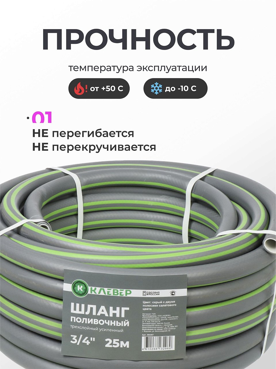 Покупая поливочный шланг "Клевер", вы получаете не только функциональный инструмент для полива, но и уверенность в его надежности и долговечности. Это отличный выбор для тех, кто ценит качество и удобство в использовании. Забудьте о проблемах с поливом и позвольте этому шлангу стать вашим незаменимым помощником в саду!