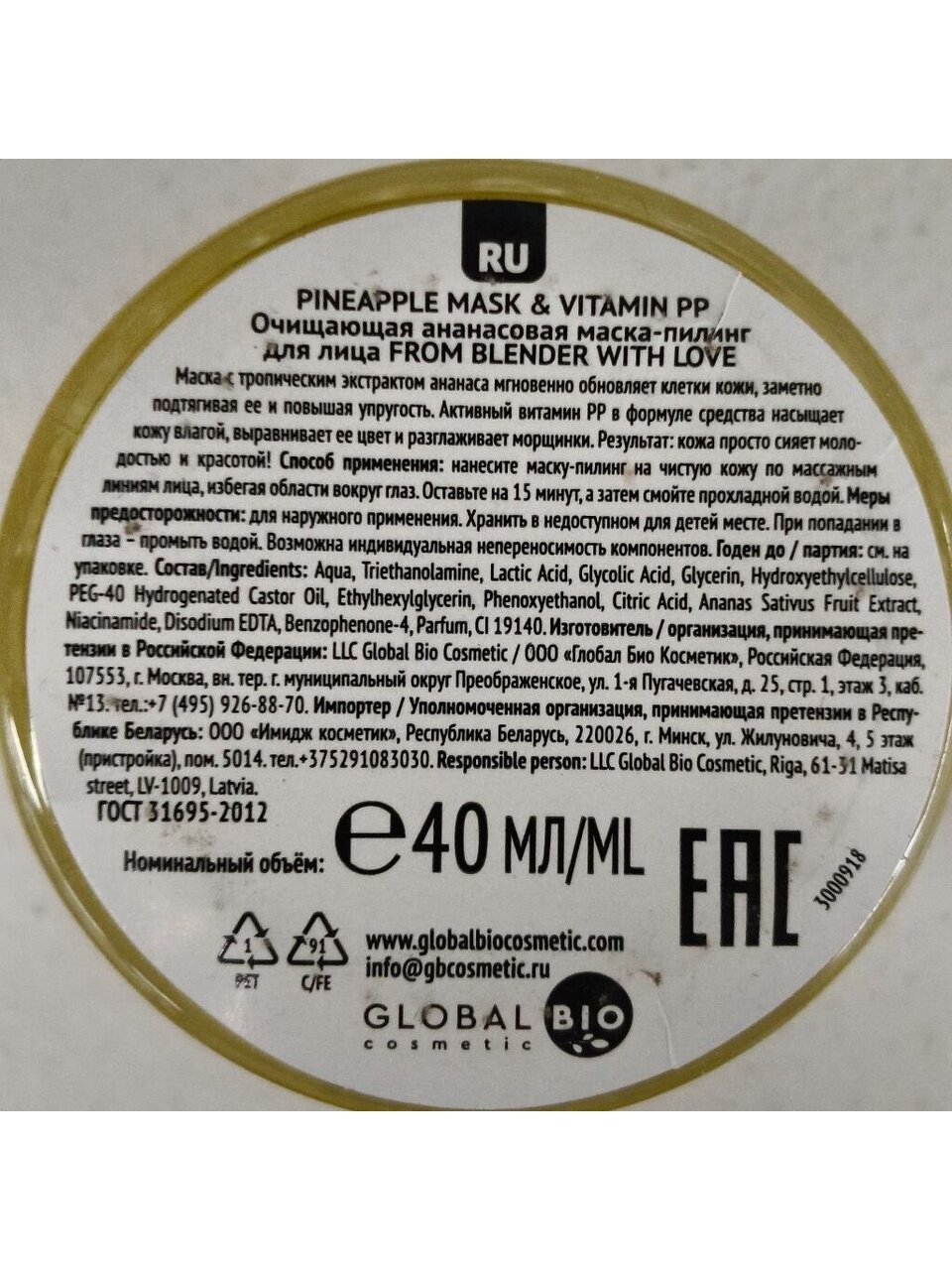 Вы можете приобрести «Маска-пилинг для лица From Blender, Ананасовый, 40 мл, очищающая» и другие товары в нашем интернет-магазине в Липецке по низким ценам и с бесплатным самовывозом.