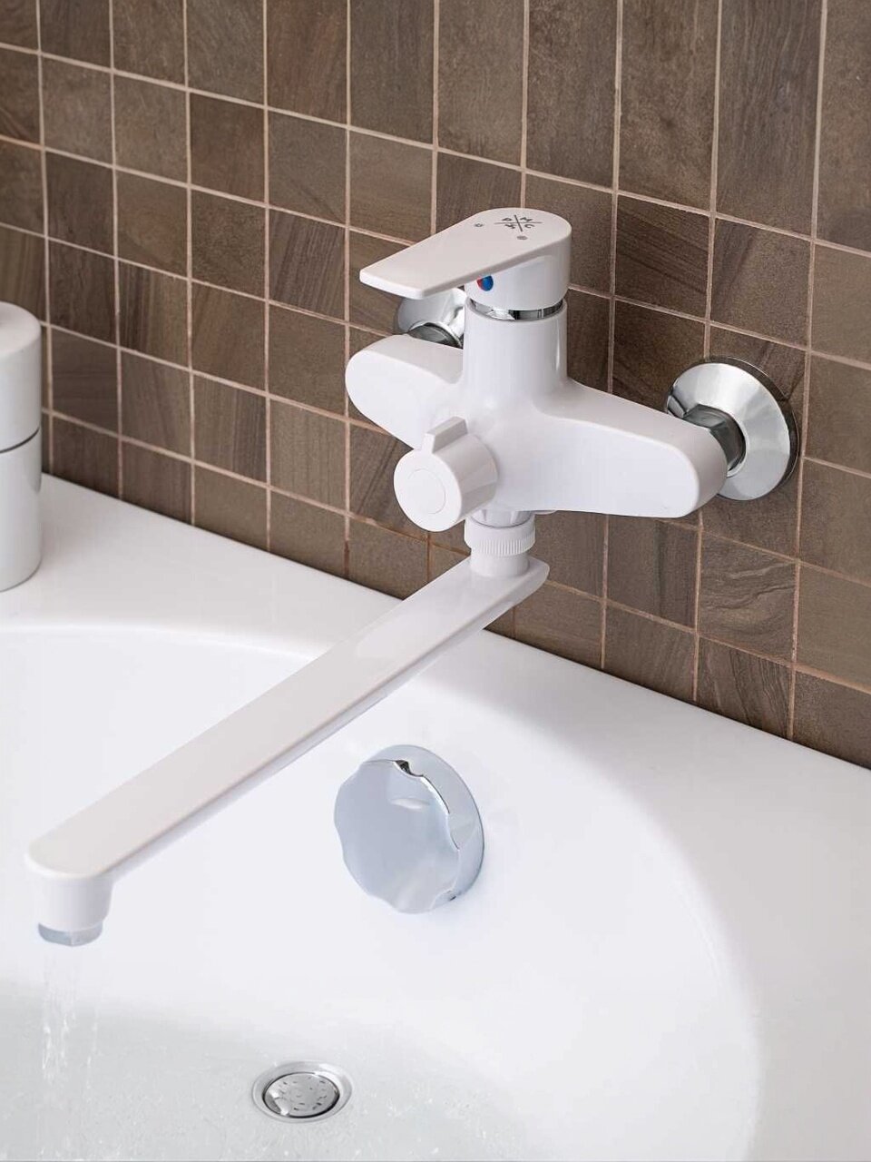Смеситель для ванны РМС PL6-006E — лёгкий пластиковый корпус, современный дизайн, экономия воды и простая установка для дома и дачи.