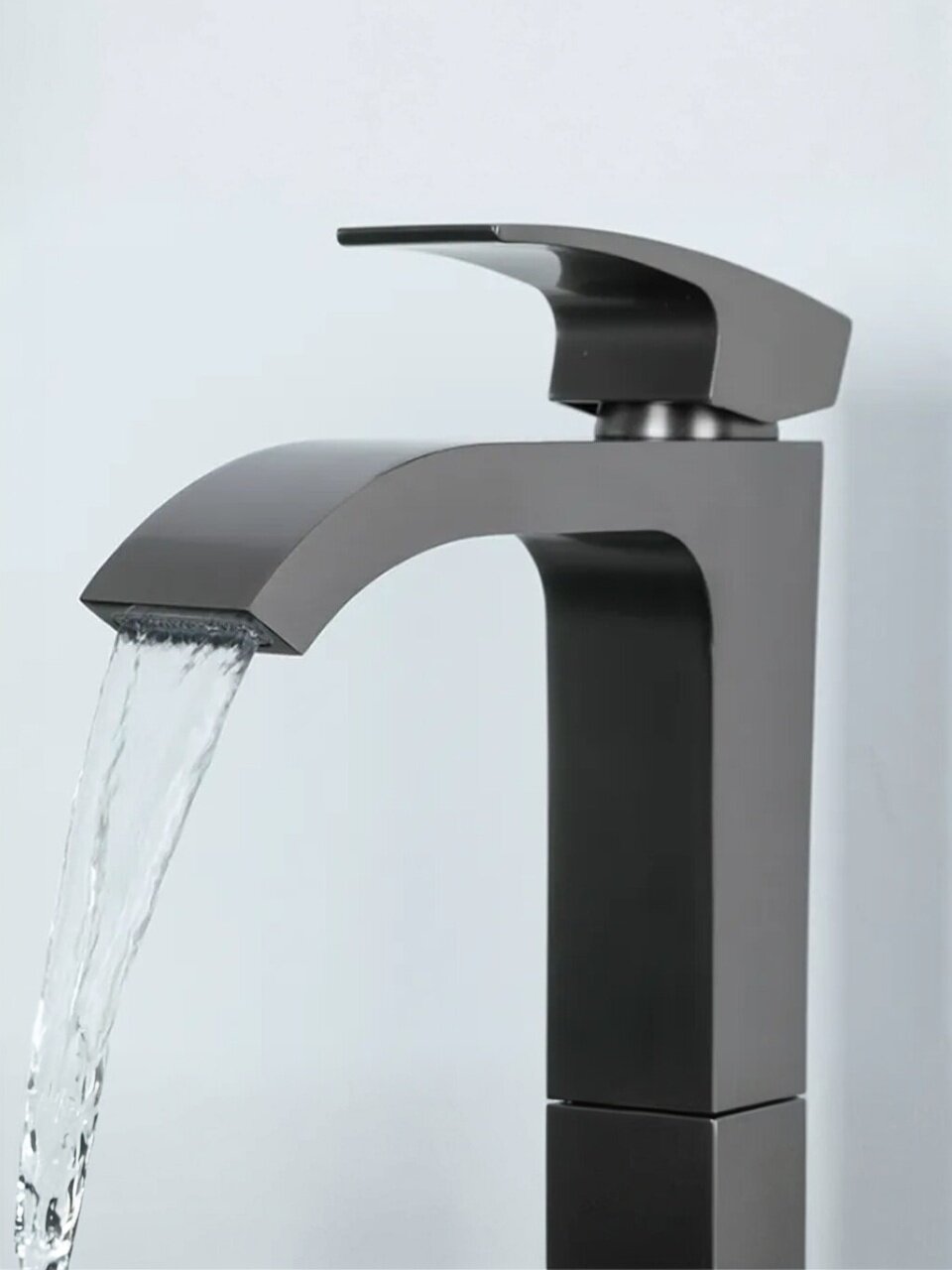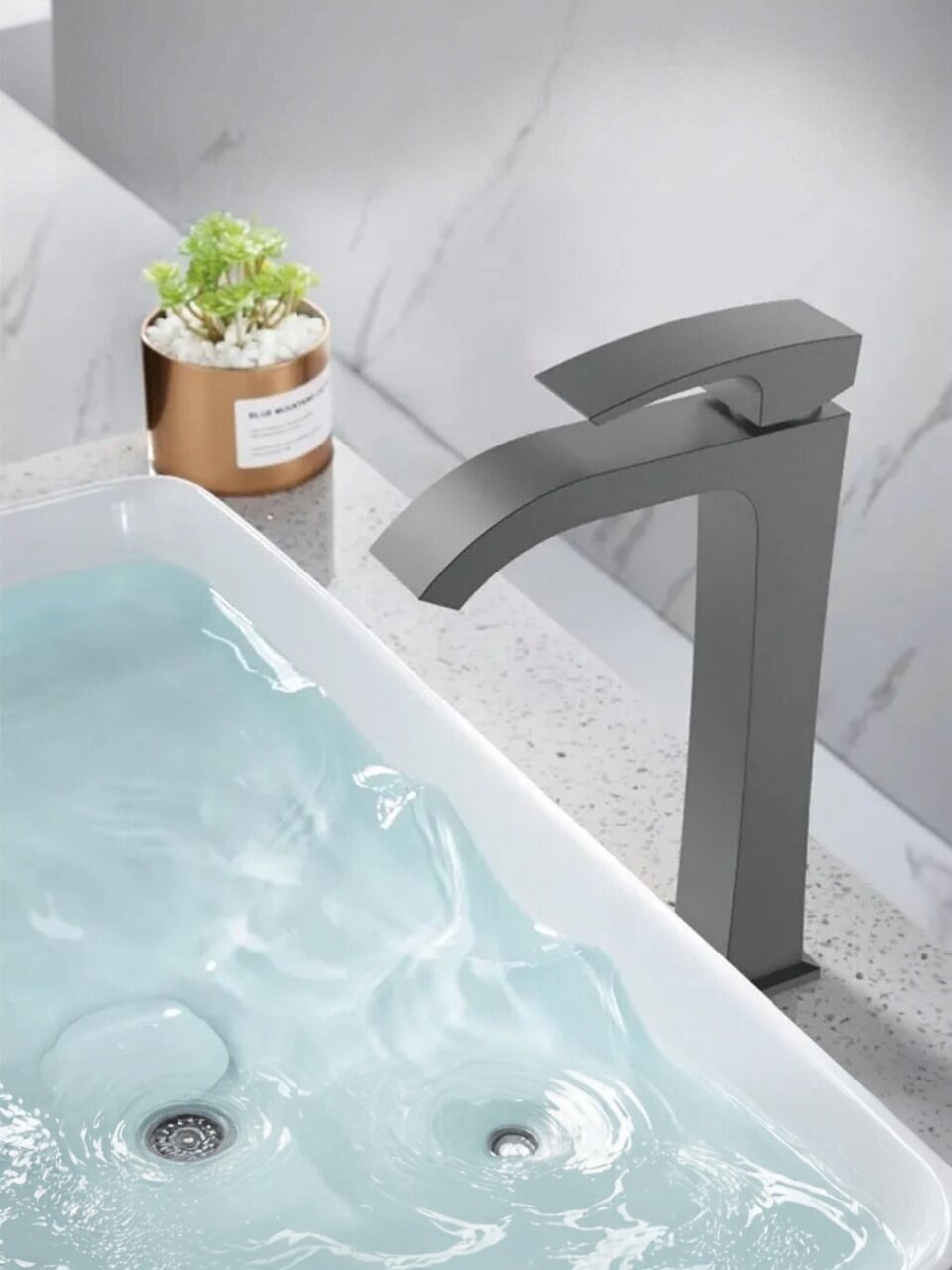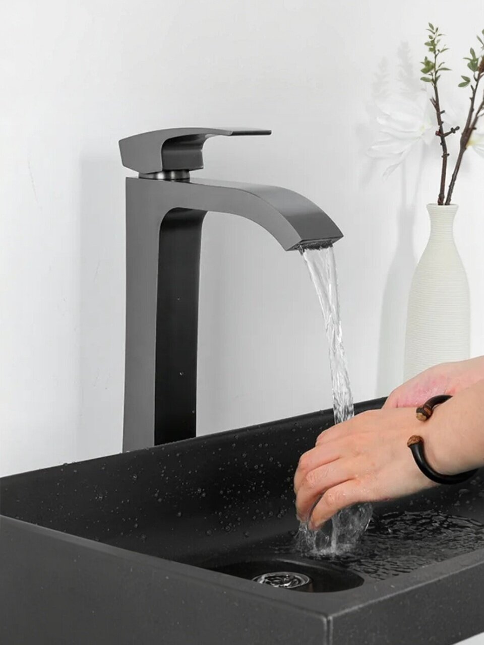 Смеситель для раковины Gappo G1007-89 — современный латунный корпус, высокий излив 25,8 см, матовая поверхность. Идеальный выбор для стильной ванной без лишних затрат.