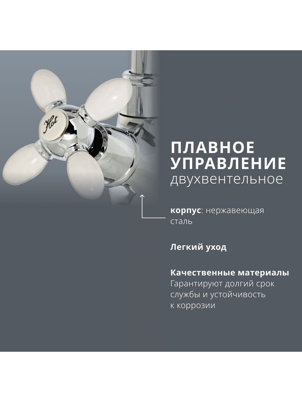 - Корпус из цинкового сплава с керамической кран-буксой — срок службы до 10 лет, устойчива к коррозии и перепадам давления