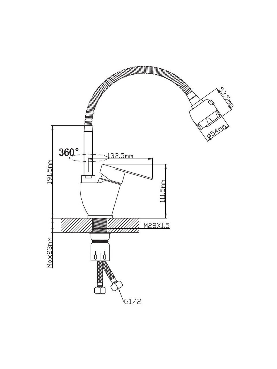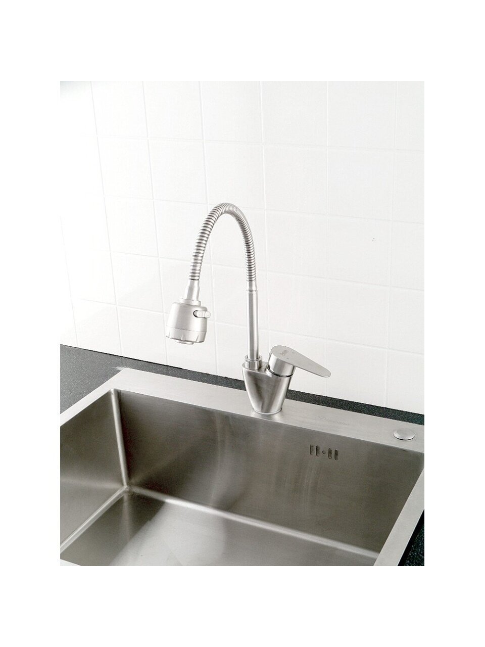 - Гибкий излив 27 см — удобно мыть крупную посуду, легко направлять поток воды в любую точку мойки