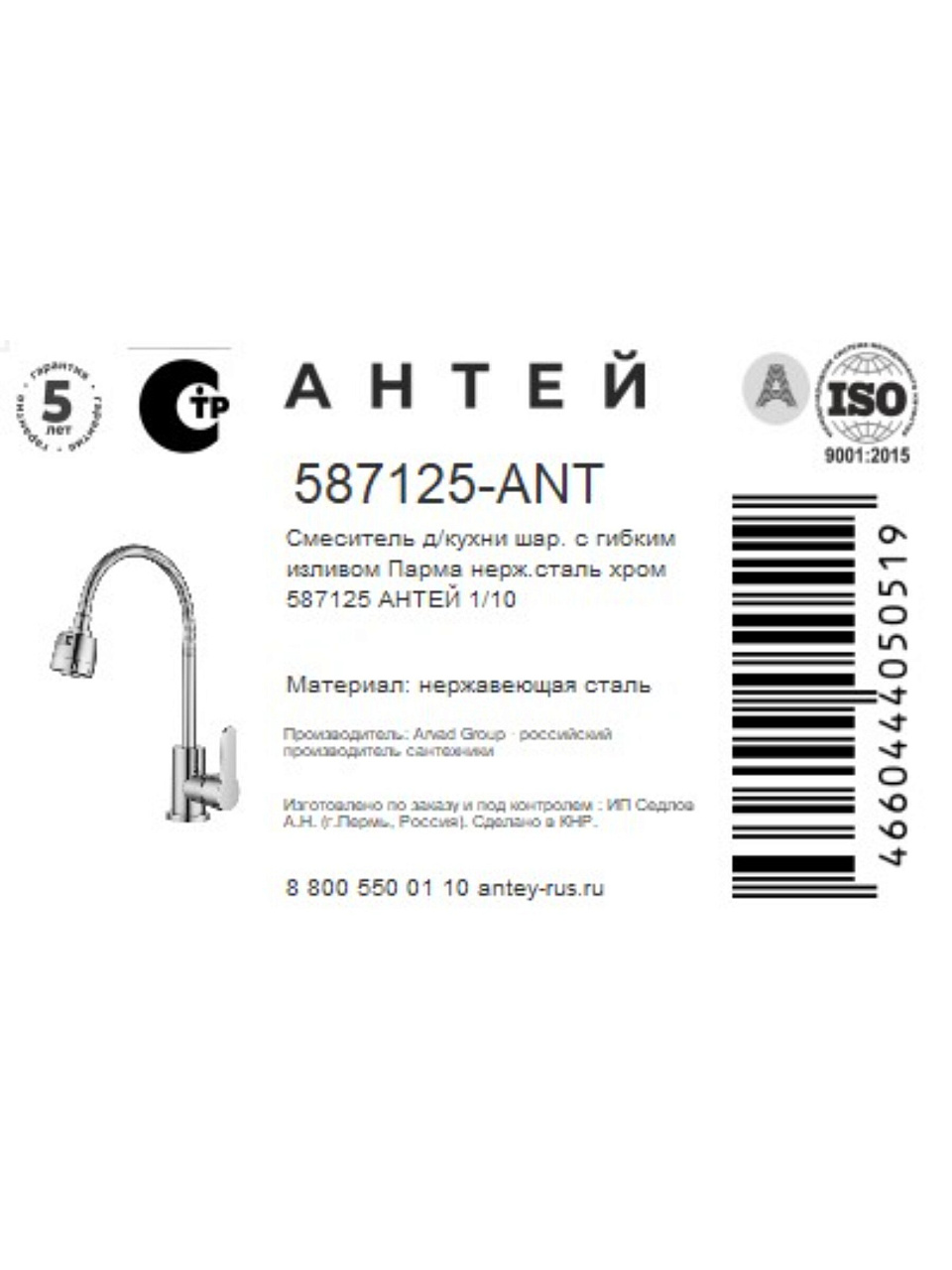 Оформите заказ на смеситель для кухни Антей Парма 587125-ANT прямо сейчас — получите быструю доставку, гарантию производителя 12 месяцев и уверенность в долговечности благодаря корпусу из нержавеющей стали.