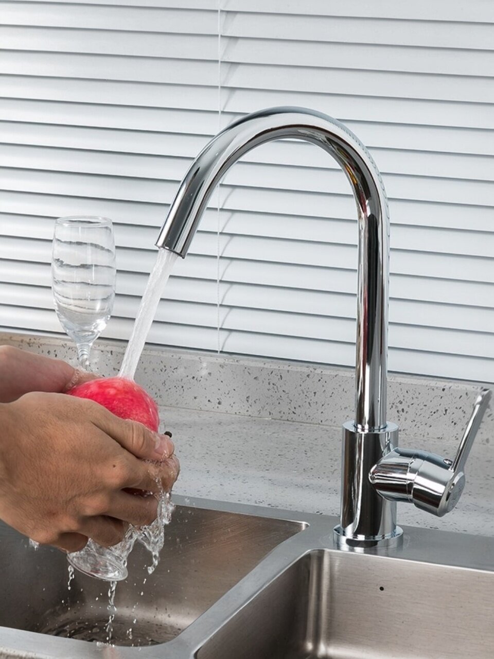 Смеситель для кухни Frud R42052-10 — оптимальное решение для тех, кто ищет, какой смеситель выбрать для кухни с надежной сборкой и стильным внешним видом. Корпус из нержавеющей стали устойчив к коррозии, а глянцевая хромированная поверхность не тускнеет со временем. Высокий поворотный излив (24 см) облегчает мытье крупной посуды и наполнение высоких емкостей, что особенно важно для семей или дачи.