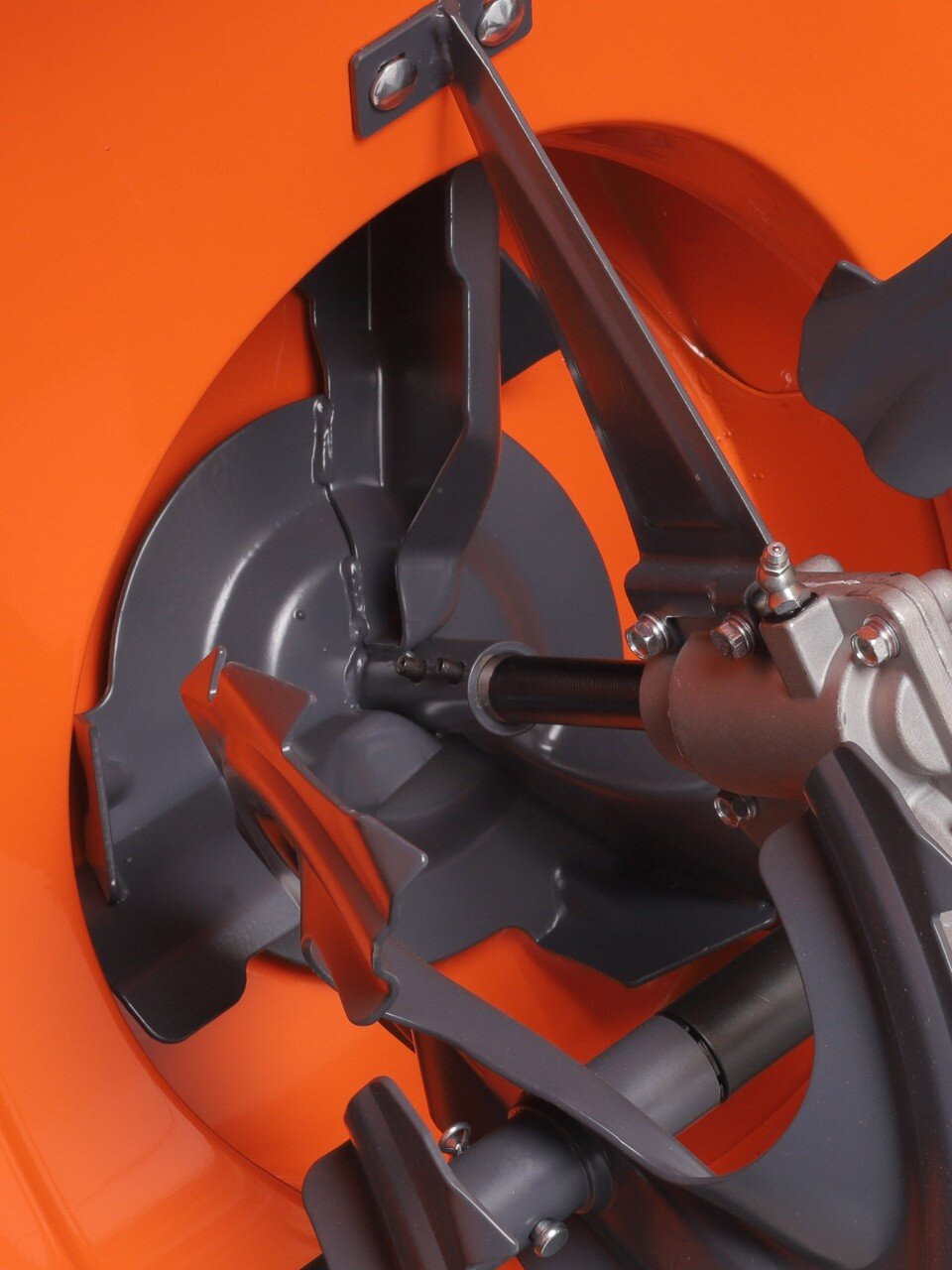 - Ширина захвата 71 см, высота 53 см, металлический шнек 300 мм, безвоздушные колёса Winter Extreme 3 — долговечность и проходимость.
