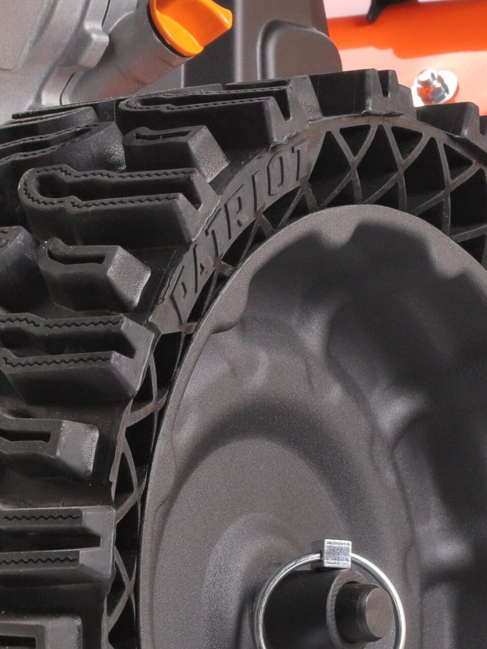 Безвоздушные колёса Winter Extreme 3 диаметром 355 мм изготовлены с добавлением каучука, не боятся проколов и обеспечивают отличное сцепление даже на льду.