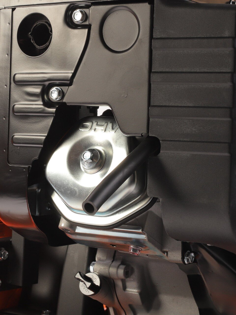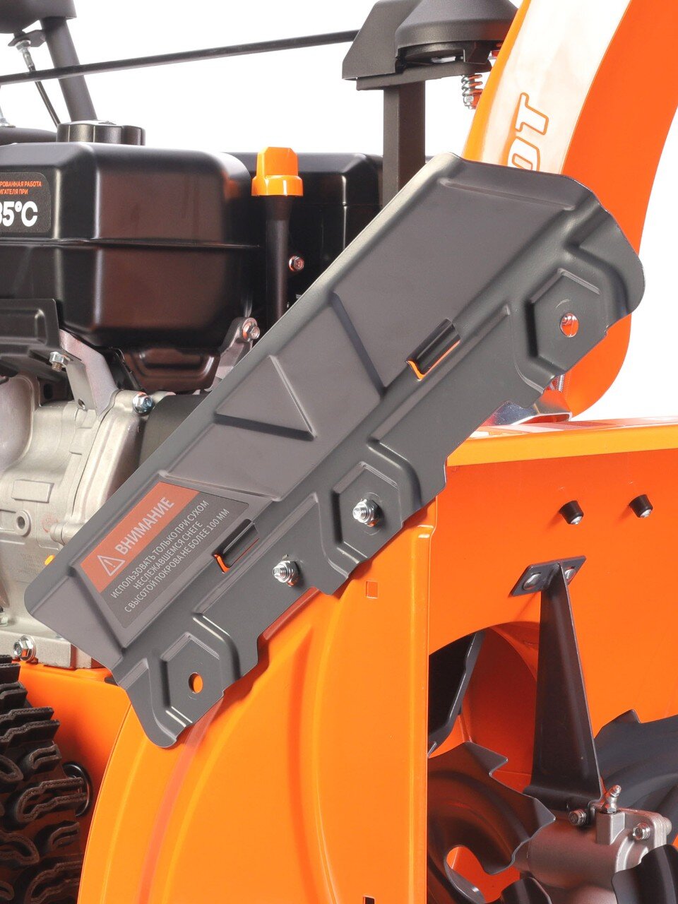 Модель рассчитана на уборку как свежего, так и слежавшегося, плотного снега. Металлический шнек диаметром 300 мм и мощный бензиновый двигатель 11 л.с. справятся даже с высокими сугробами.