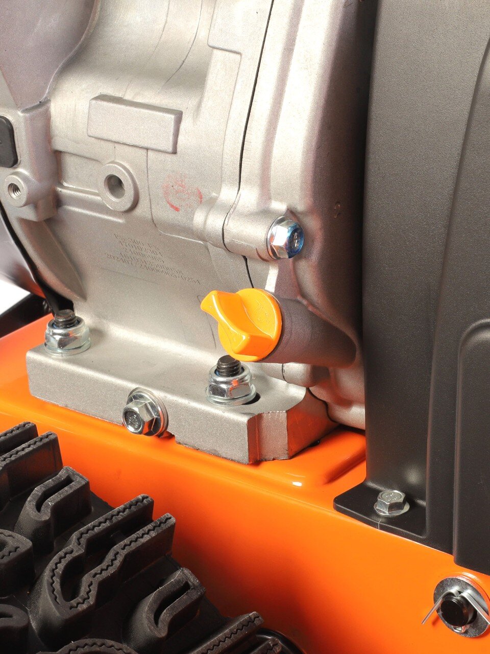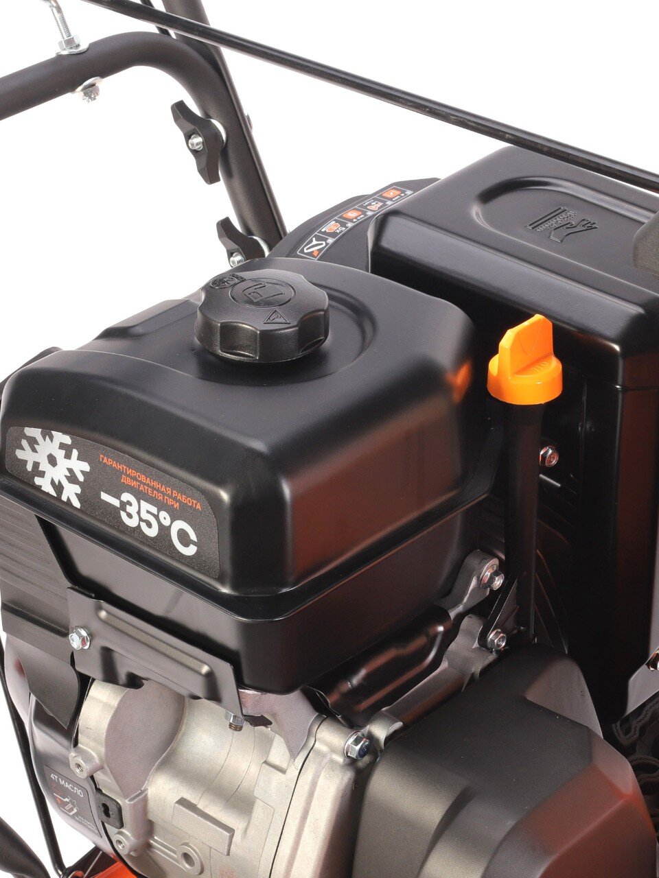 - Мощность 11 л.с. и двухступенчатая система — эффективно чистит даже плотный, слежавшийся снег.