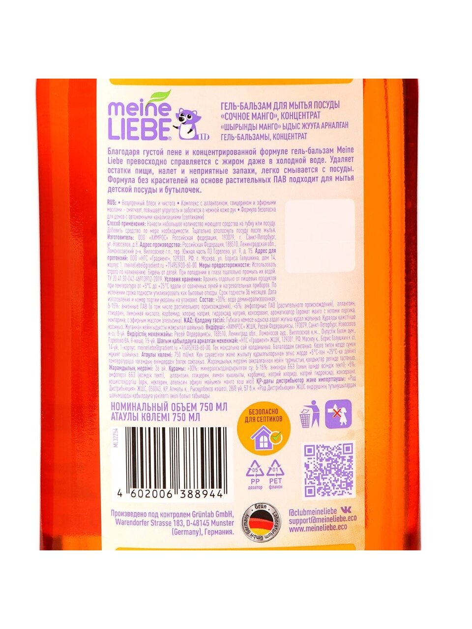 Средство для мытья посуды Meine Liebe, Сочное Манго, 750 мл – гель-концентрат для эффективной и экономичной уборки кухни. Сочный аромат манго создает приятную атмосферу, а концентрированная формула обеспечивает быстрое удаление жира и загрязнений. Идеально подходит для ежедневного использования и заботы о чистоте посуды.